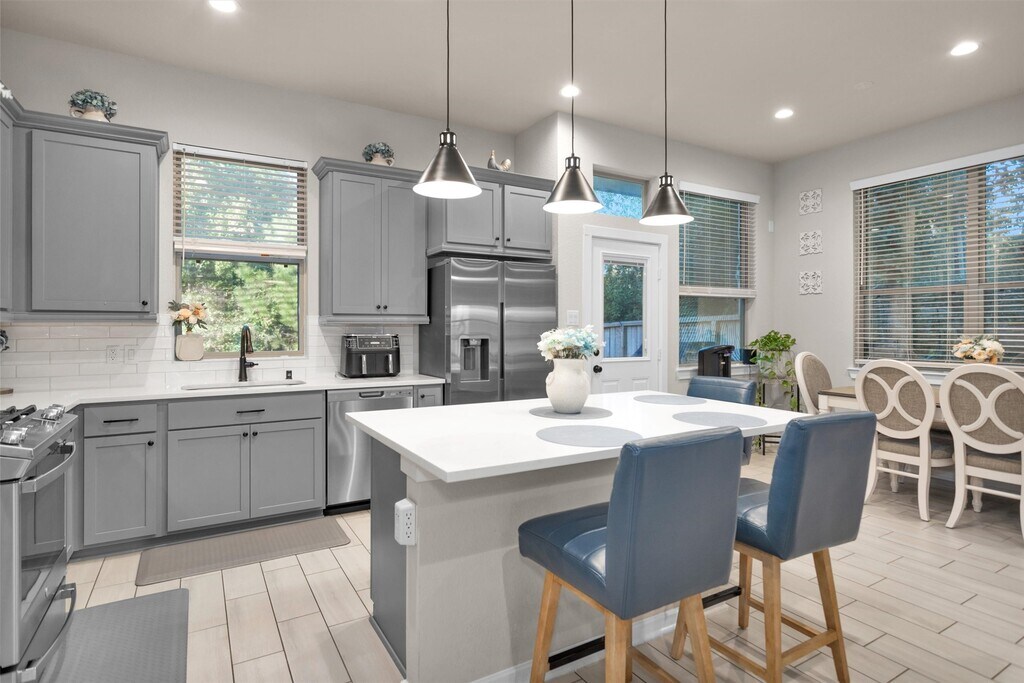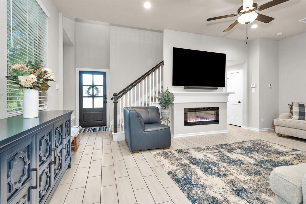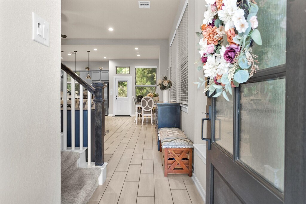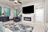Nestled in the highly sought-after master-planned community of Woodforest,this beautiful townhome sits on a premier corner lot backing to a serene wooded reserve,offering unmatched privacy and no back neighbors. Enjoy a peaceful setting with ample guest parking. Inside,a wall of windows fills the open-concept living,dining,and kitchen area with natural light and provides stunning wooded views. Kitchen is upgraded and showcases painted cabinets & stainless appliances & island providing additional seating. Upstairs features a versatile flex/game room,all bedrooms,and a conveniently located utility room. Thoughtful touches include privacy screens,low utility costs,and a quiet location just steps from Stewart Elementary and the community pool. Combining modern comfort with Woodforest’s exceptional amenities,this home offers the perfect balance of convenience,tranquility,& community living. MLS# 45467458