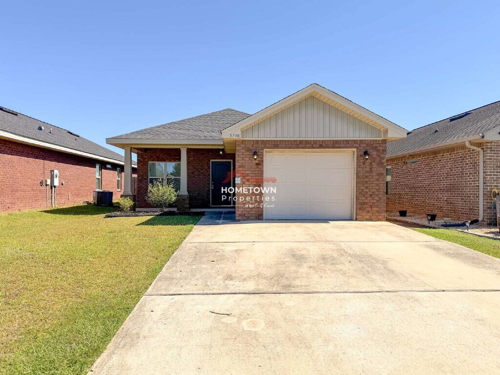 Beautiful Pet Friendly home in Pace! Community sidewalks, underground utilities, a community playground and a perfect location for this home! On the exterior you will find maintenance-free vinyl trim, dimensional shingles and vinyl tilt-out windows. The home features lots of natural light, ceiling fans in the primary bedroom and living room, stainless steal appliances in the kitchen and a dreamy Primary Bedroom with a great oversized closet and double sinks featured in the Primary Bath. This home is conveniently located in the Berryhill area and is not set up for housing vouchers. The backyard is partially fenced. All Hometown Properties of the Gulf Coast residents are enrolled in the Resident Benefits Package (RBP). RBP is $50 per month and includes liability insurance, credit building for on-time rent, up to $1M ID theft protection, HVAC filter delivery (where applicable), resident rewards, and on-demand pest control. More details provided with application. Showings are by appointment only and are accompanied by an agent. Security deposit is a full month’s rent or based on application findings; roommate deposits are 75% of base rent per roommate. Lease commencement must be within 14 days of approval (or 14 days from expected availability). Fees: $100 lease prep before move-in; $75 application fee per adult; no co-signers or guarantors. Pets: Two pets considered. Pet fee with additional deposit. No aggressive breeds. Tenant pays all utilities (power, water, sewer, trash, cable, internet). Lawn maintenance not included. On-demand pest control via PestShare is included in the Resident Benefits Package. By submitting your information on this page you consent to being contacted by the Property Manager and RentEngine via SMS, phone, or email.