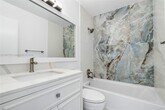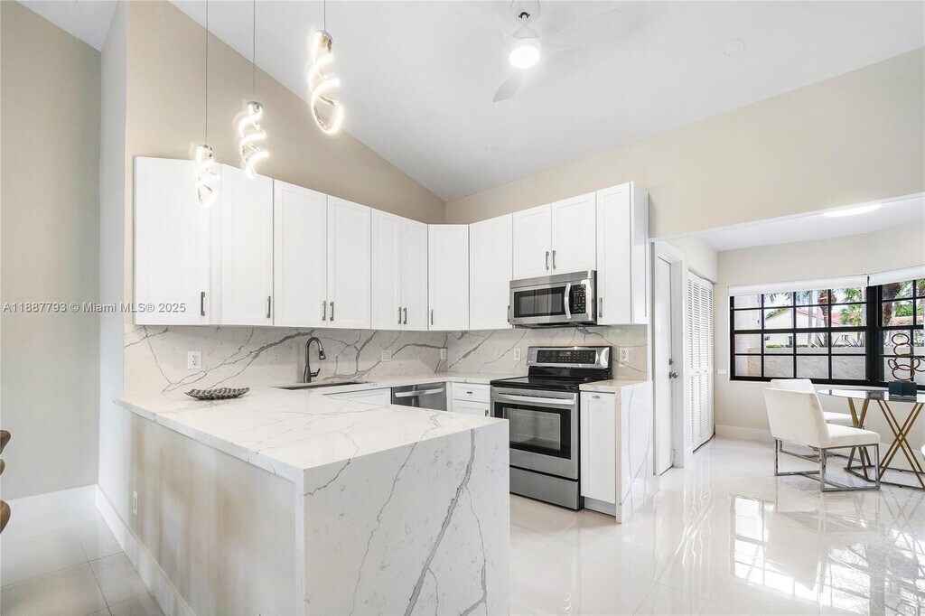Experience modern living in this beautifully renovated 2-bedroom, 2-bath villa available for rent in a peaceful 55+ community. This stylish home features 24x24 porcelain tile flooring, a designer kitchen with quartz countertops and stainless steel appliances, and updated bathrooms with new vanities, tubs, showers, and sleek tile finishes. Thoughtful upgrades include new lighting, switches, and outlets. A brand-new 2024 HVAC system and new tile roof ensure year-round comfort. Enjoy elegant, low-maintenance living in a welcoming, active adult environment. $203 monthly special assessment for roof replacements applies. Furnished seasonal rental option available upon request. Please feel free to inquire.