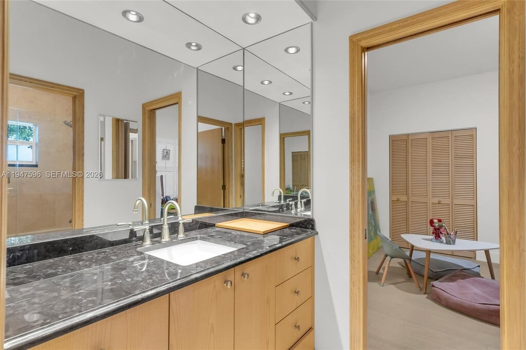 Welcome to your private South Miami retreat! This beautiful 3-bedroom, 2.5-bath pool residence is nestled on a quiet cul-de-sac highly sought-after Sara Park neighborhood. Featuring 2,466 sq ft of refined living space on an oversized 10,792 sq ft corner lot. Step inside to discover soaring 9-ft ceilings, marble and warm grey-oak flooring in the throughout. The gourmet kitchen is a chef's dream, boasting custom cabinetry, Miele & Sub-Zero appliances, and elegant countertops. Spacious living areas flow seamlessly to the tropical backyard garden with built-in BBQ & sparkling blue mosaic heated pool and spa. Stroll to SOMI best shops & restaurants surrounded by great public and private schools. Can be rented unfurnished. MLS # A11947596