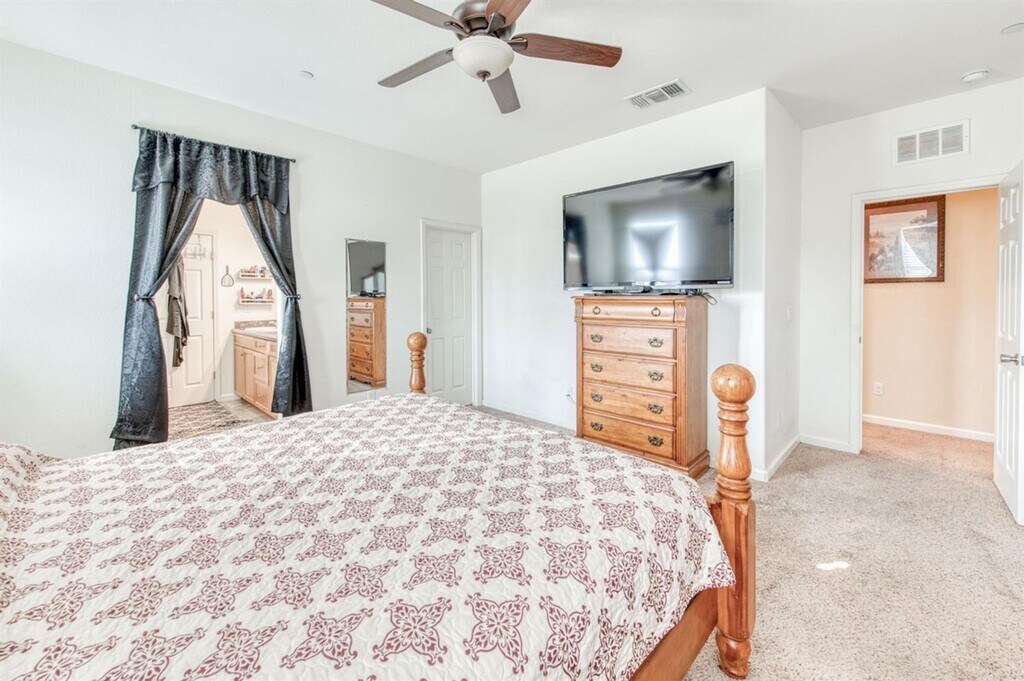 This well cared for Fancher Creek Centex property with 4 bedrooms a very desirable home. The floorplan lends itself to very good living spaces for all the needs of a family. The office/den downstairs is conveniently located plus there is a half bathroom nearby. The spacious great room with laminate like wood flooring opens to a lovely kitchen with a large dining area plus a breakfast bar for all your eating and entertaining needs. The kitchen includes granite countertops, a gas cooktop, plus a handy pantry and can lighting. Upstairs is a lovely main bedroom with a large walk in closet and bathroom. In addition to the other bedrooms, there is a nice loft area. The large back yard has concrete on both sides and is low maintenance. Home has solar to reduce your PG&E bills.