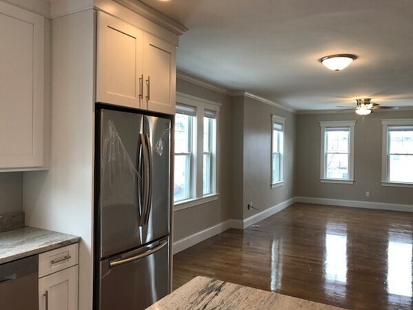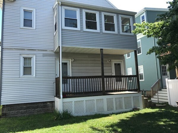 This modern three-bedroom unit features a spacious open layout that easily accommodates a combined living and dining area. The kitchen offers granite countertops and contemporary appliances,creating a sleek and inviting entryway. Well-maintained hardwood floors run throughout,and each bedroom includes ample closet space.A private washer and dryer,along with additional storage,are located in the basement for added convenience. One parking space is included. A small yard and a back porch are accessible through the rear entrance. No smoking. No pets. MLS# 73455288
