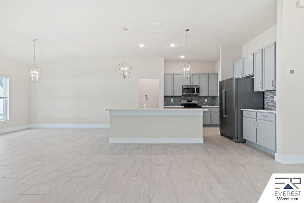 GORGEOUS 3-BED, 2-BATH HOME FEATURING AN OPEN LAYOUT WITH A BRIGHT AND FUNCTIONAL EAT-IN KITCHEN WITH STAINLESS STEEL APPLIANCES, LUXURY QUARTZ COUNTERTOPS, UPGRADED CABINETRY, A KITCHEN ISLAND WITH COUNTER BAR, AND A COZY BREAKFAST NOOK—PERFECT FOR EVERYDAY MEALS OR ENTERTAINING. SPACIOUS LIVING ROOM OPENS THROUGH SLIDING GLASS DOORS TO A COVERED PORCH AND PRIVATE, FULLY FENCED BACKYARD, IDEAL FOR RELAXING OR ENTERTAINING OUTDOORS. TILE FLOORING THROUGHOUT AND MODERN LIGHT FIXTURES. THE SPLIT-BEDROOM LAYOUT ENSURES PRIVACY, FEATURING A MASTER SUITE WITH A DOUBLE-SINK VANITY, WALK-IN SHOWER, AND WALK-IN CLOSET. ADDITIONAL HIGHLIGHTS INCLUDE 2,458 TOTAL SQ FT, 1,722 LIVABLE SQ FT; A SEPARATE LAUNDRY ROOM, AND A TWO-CAR ATTACHED GARAGE. LOCATED IN THE HIGHLY DESIRABLE INDIAN TRAILS NEIGHBORHOOD, WITH EASY ACCESS TO SCHOOLS, SHOPPING, THE TOWN CENTER, BEACHES, MAJOR HIGHWAYS, DAYTONA BEACH, AND HISTORIC ST. AUGUSTINE. AVAILABLE FOR IMMEDIATE MOVE-IN. SOLID LANDLORD! $2150 ON 3-YEAR LEASE $2250 ON 2-YEAR LEASE $2350 ON 1-YEAR LEASE