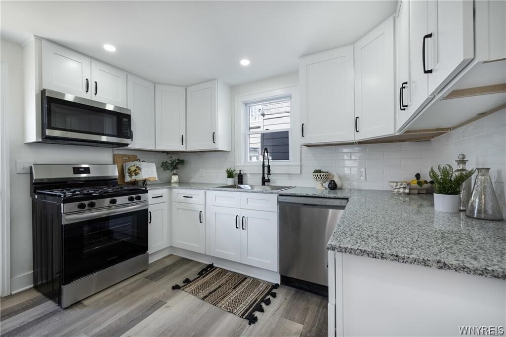 FOR LEASE – Beautiful SINGLE-FAMILY Home! This fully renovated 3-bedroom,1-bath home offers modern updates and a fantastic location near UB South and Niagara Falls Blvd. The bright and spacious living room features recessed lighting,while the brand-new kitchen includes granite countertops,stainless steel appliances,and plenty of cabinetry. The updated bathroom offers a new vanity and a stylish tiled shower. All bedrooms are generously sized with excellent storage space. Major upgrades include new windows,a high-efficiency furnace,central AC,fully rewired electrical system,new second-floor plumbing,and a durable architectural roof. Full dry basement with laundry hook-ups. Enjoy a private backyard and a prime location close to shopping,restaurants,and public transportation.