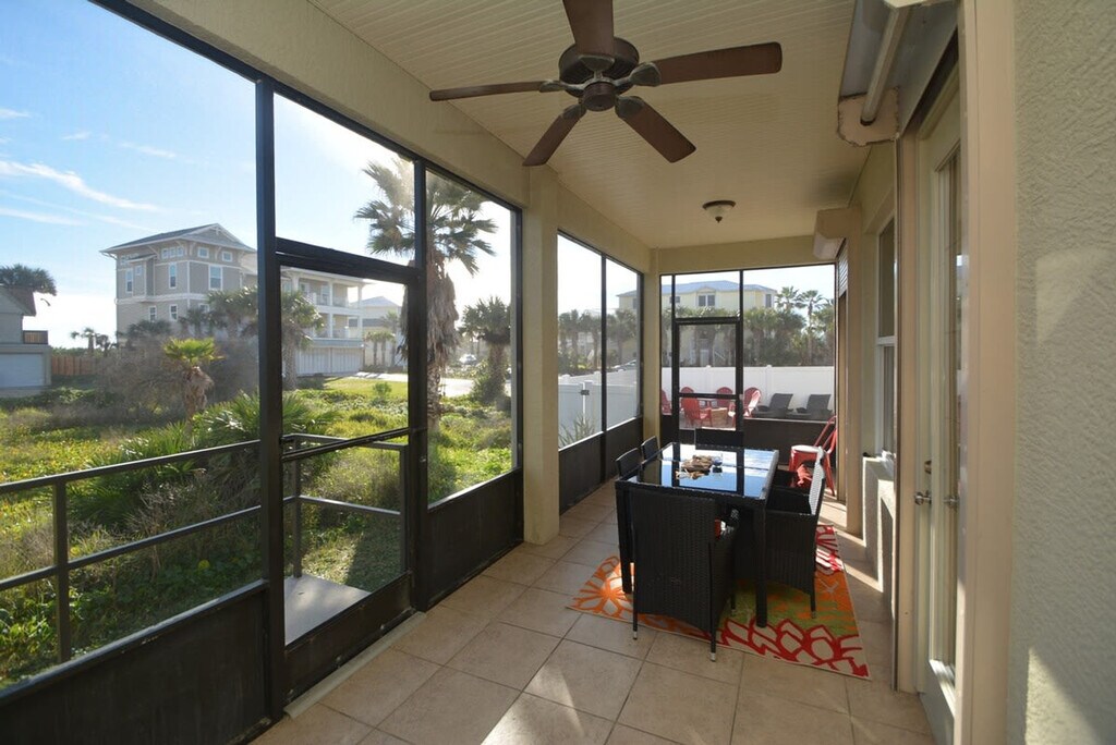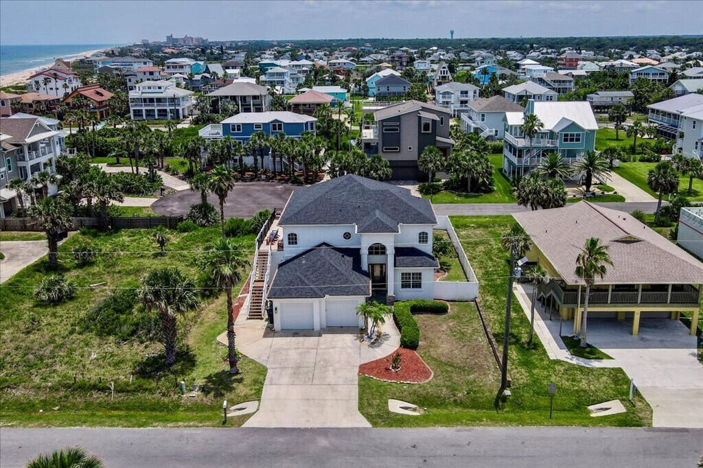 Escape to this luxurious beachfront home in Palm Coast, perfect for 1-3 families with up to 6 kids. Just steps from the ocean, this stunning 2-story residence features a great room with high ceilings, a relaxing screened-in porch, and a balcony with ocean views. With three primary suites and a kids' room with bunk beds, you'll feel at home in this exquisite setting. This luxurious beach house offers a gourmet kitchen with high-end appliances, including a double waffle maker and espresso machine. Relax on the screened-in porch or enjoy ocean views from the balcony. The home features a gas fireplace, a main-floor library and gaming center, and large plasma TVs with free streaming sites and a Wii gaming console. The fenced backyard is ideal for pets, and the 72 jet-filled hot tub and open stone fire pit provide outdoor bliss. Pets are welcome with a $100 per pet fee. Beach chairs, umbrellas, boogie boards, children's toys, and beach games are provided for your fun and convenience. This luxury beach house is ideally located, only minutes from grocery stores, restaurants, natural public parks, recreational facilities, and biking and walking trails. Enjoy exclusive access to a private beach with no public parking, ensuring a quiet and uncrowded experience. If you need a change of scenery, take a 25-minute drive to either St. Augustine or Daytona Beach or an hour's drive to Jacksonville or Orlando. Quiet hours are between 22:00 and 7:00. Do not climb the dunes outside of the designated areas and watch for turtles safely nesting on the beach. A property manager is local and always available by phone, text, or in person. Registration Number: 28--3