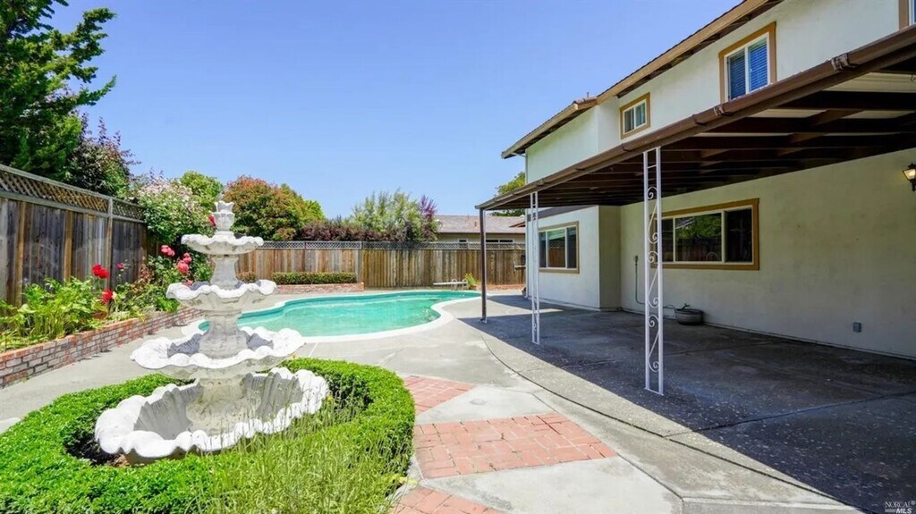 Spacious 4-bedroom, 2.5-bathroom Mediterranean-style home in Novato. Located in a quiet cul-de-sac, Large yard with a covered patio, pool, and jacuzzi. There is also a lovely fountain and a lemon tree with an abundant crop of lemons! The newly remodeled kitchen overlooks a backyard or pool and is conveniently located next to the family room. The roomy living room has a cozy wood-burning fireplace. Wood flooring throughout the house. Cute laundry room off the downstairs bath, and a 2-car attached garage. Owner pays for pool and jacuzzi maintenance. Tenants are responsible for yard maintenance. PETS: Owners will consider one (1) pet with an additional deposit of $500. To be pre-approved to rent this home, apply at APPLICANTS MUST APPLY & MEET THE FOLLOWING CRITERIA* 1. Application must be complete (all required information attached) 2. Employment and income must be verifiable 3. Household income is 3x monthly rent 4. Credit must be good. No 30 or 60-day lates, collections, or evictions 5. Rental history of at least 3 years, and good landlord reference(s) other than family 6. Proof of Renter's Insurance *Owner's requirements may vary. G. Giselle Tessier, ARM Bundesen Property Management DRE #01868917