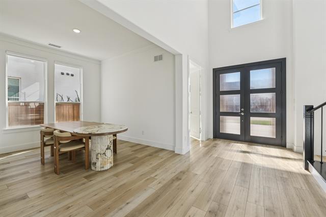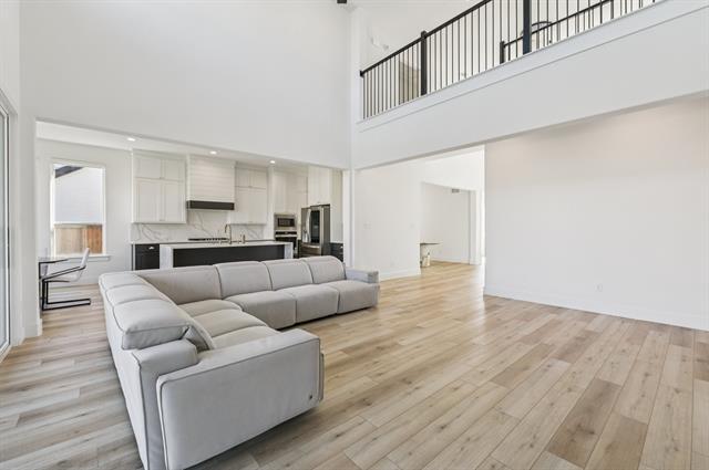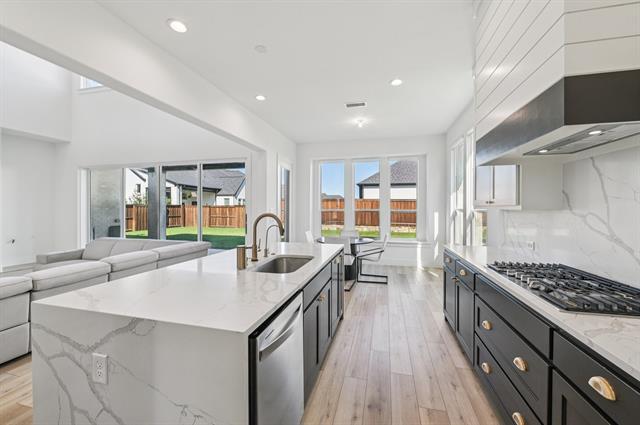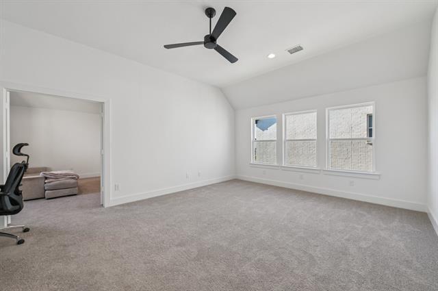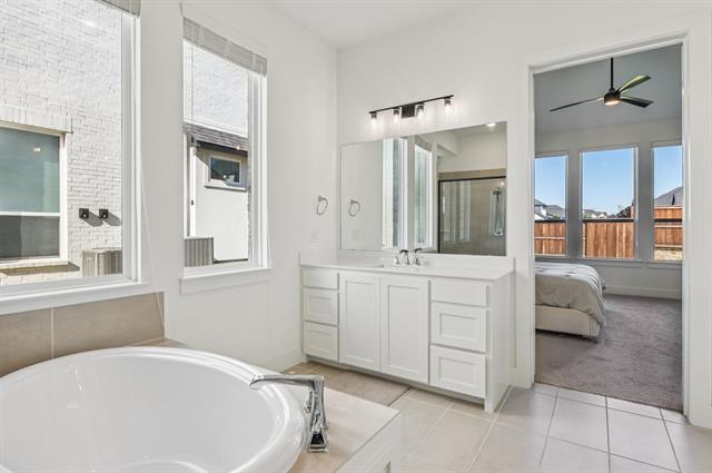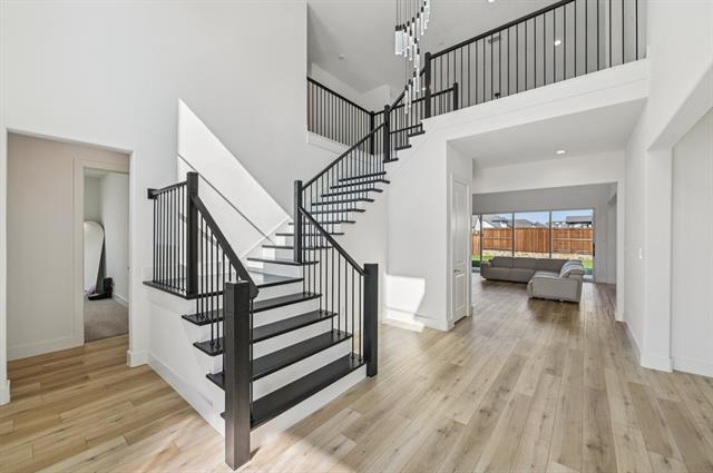 Gorgeous, nearly new West-facing home in Prosper! Zoned to the highly acclaimed Prosper ISD, this home is filled with soaring ceilings, abundant natural light, and an open floor plan perfect for modern living. The main level features a private office for working from home, a spacious primary suite, and a guest suite. Sliding doors in the living room create seamless indoor-outdoor flow for entertaining. Upstairs offers a dedicated theater room, a versatile loft, and two additional bedrooms with their own bathrooms. Enjoy style, space, and convenience in Prosper’s highly desirable community - with access to award winning amenities including a 5 acre lagoon, lap pool, splash pad, pickleball & tennis courts, basketball court and more.