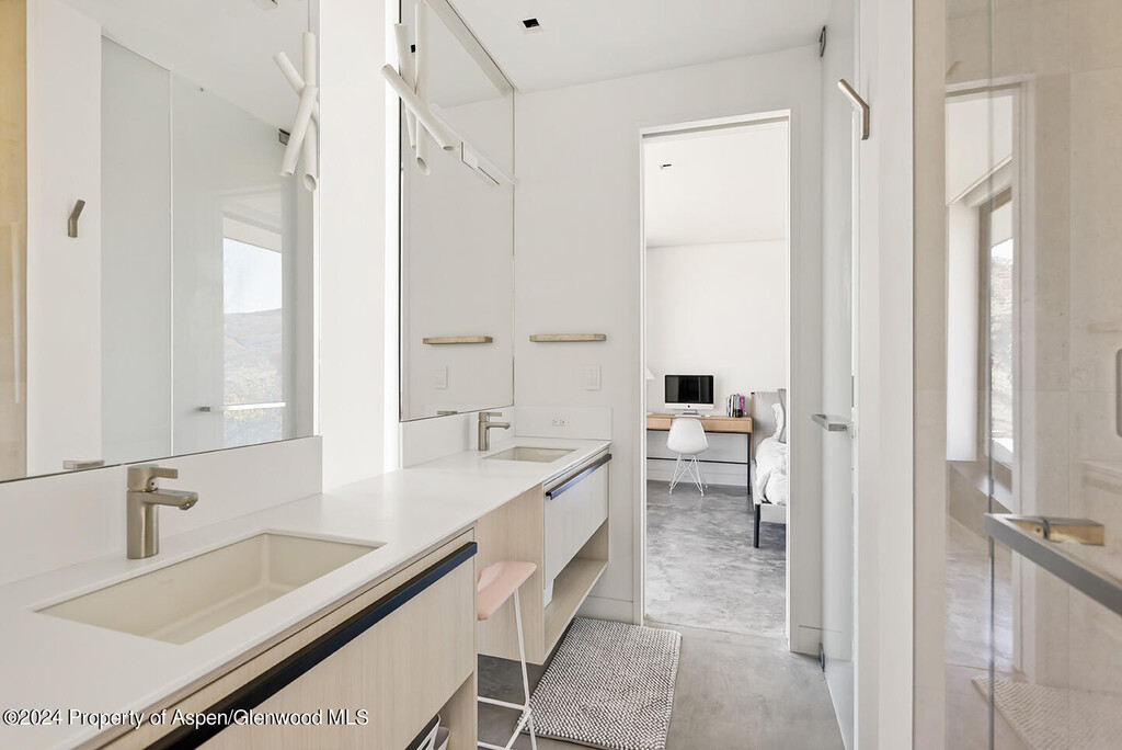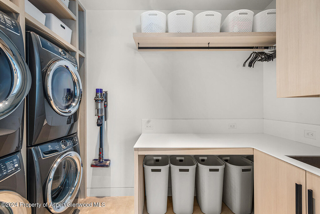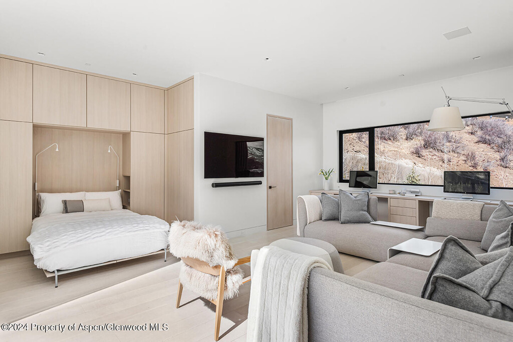 This contemporary architectural home has been meticulously crafted to harmonize with its natural surroundings,while boasting an unwavering commitment to quality and artistry. Nestled into the mountainside,it offers breathtaking vistas and a seamless integration of indoor and outdoor living spaces. The Living Room,Dining Room,and European Kitchen open up to sweeping mountain views and a warm wood-burning fireplace. Every room is elegantly furnished with designer pieces,characterized by their minimalistic design and soothing neutral tones. This residence features four bedrooms plus a fifth bedroom/flex room with Murphy bed,as well as a mudroom,a laundry room equipped with two washers and two dryers,a convenient powder room,a concealed pantry,and a spacious two-car garage.