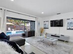 Discover your private tropical oasis in the sought-after Imperial Point neighborhood of Fort Lauderdale! This fully renovated and tastefully furnished 4-bedroom, 2-bath residence boasts an open-concept design filled with natural light, sleek tile flooring, Corian countertops, and stainless steel appliances. Outside, indulge in resort-style living with a heated pool, pergola, cabana bath, outdoor shower, and expansive covered patio, which is perfect for entertaining or relaxing. Additional highlights include keyless entry, premium furnishings (3 queens + 1 king), and a fully stocked kitchen. Ideally located just minutes to the beach, Las Olas, Wilton Manors, Flagler Village, fine dining, shopping, and the airport.