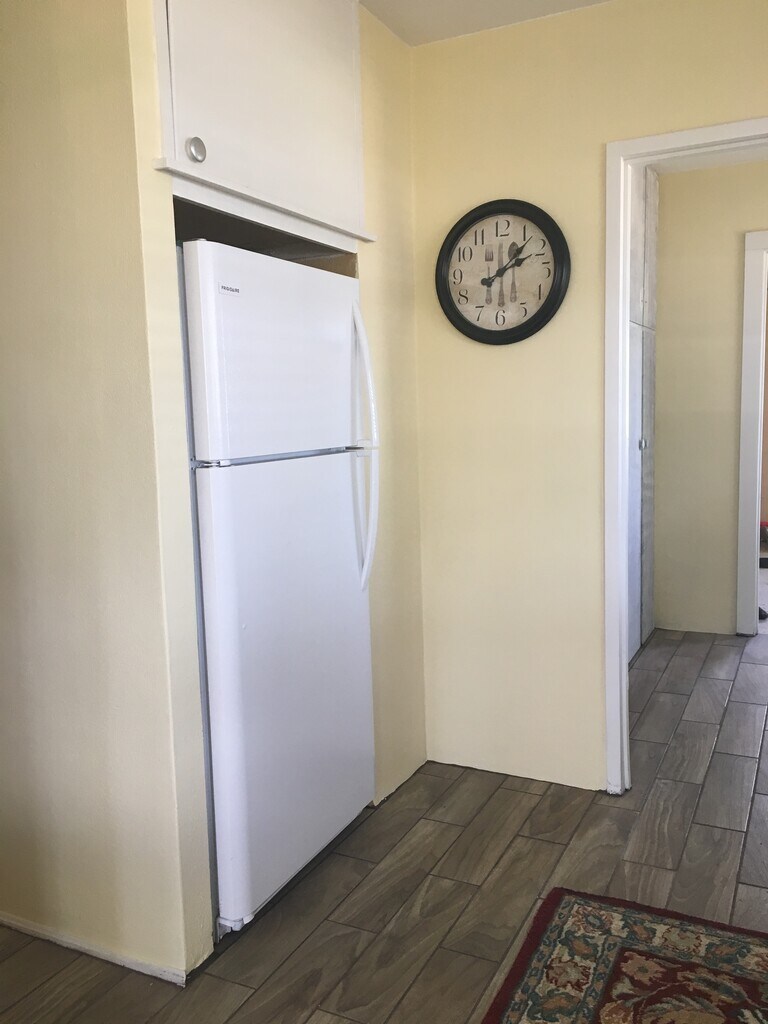Strong and roomy! Large, solid concrete home with tons of space and storage. New Interior, meticulously kept! Our home has a super cool layout. Entire home has wood-look ceramic tile. Each room is freshly painted with new fans and new lighting. The eat-in kitchen has granite and tile backsplash with stove and refrigerator. Pull up a few barstools at the counter for extra seating or a great place to do homework. Bathroom is fully updated with walk-in shower. Tons of storage and cute cabinets thru out. Laundry hook ups are inside the house in a mud room that divides the extra living room/bedroom from the kitchen. New AC unit to keep you nice and cool. Plenty of parking for your vehicles and you can also walk to many places like Sunrise Cafe, Commandoughs and the elementary school. Busy area and EXCELLENT location. Rent is $1450/mth, Deposit is $1475. Good rental history is a must.