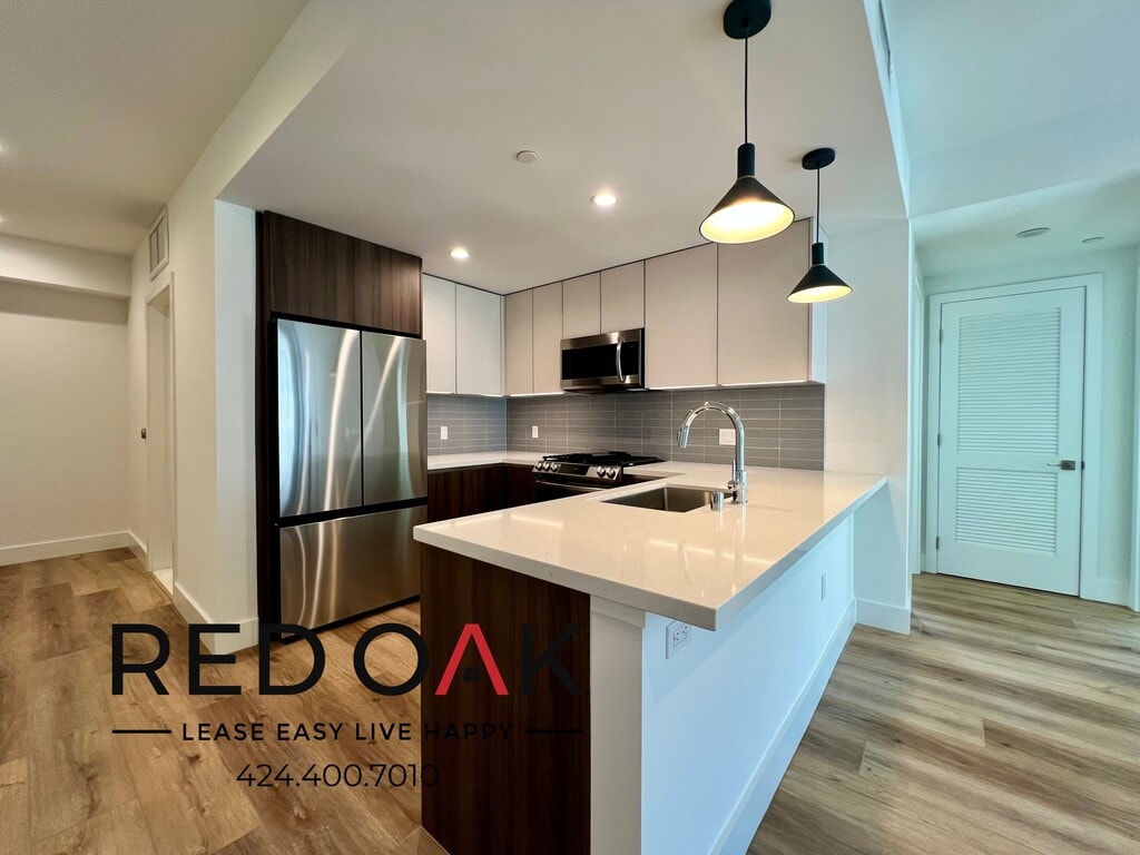 ~6 Weeks FREE~ One Bedroom with a Private Balcony, Modern Appliances, Excellent Amenities, In-Unit Washer/Dryer, and Parking Available ~ In Larchmont! **Resident will receive a one-time credit of 6 Weeks FREE off of the Market Rent Price of $4,290, on approved credit. The net effective rent shows the savings over the entire 13-month lease term. The advertised price is based on the NET EFFECTIVE RENT.* Home Highlights: ~ Open & Airy: Hardwood-style floors, enhanced by recessed lighting. ~ Private Balcony: Relax or entertain in your outdoor space. ~ Climate Control: Central heat and A/C keep you comfortable. ~ Chef’s Kitchen: Custom cabinets, quartz counters, breakfast bar & stainless appliances. ~ Comfortable Bedroom: Bright, airy, with a spacious walk-in closet. ~ Bathrooms: Modern bathroom with a walk-in shower, plus a half bath. ~ In-Unit Laundry: Washer and dryer for personal use. ~ Parking: Secure a space for a monthly fee, EV charging available. ~ $75/mo Community Fee covers Spectrum Ultra Internet, streaming TV, and gas for the stove. ~ Premier Amenities: Rooftop terrace, covered cabanas, BBQ stations, jacuzzi, and gym. ~ Pet Policy: Deposit & pet rent, 35 lbs max. ~ Prime Location: Near Downtown LA, Windsor Square, Koreatown, Hollywood, and Larchmont Village. ~ Don't miss out on the opportunity! Available for an immediate move-in. Call to schedule a viewing today! LEASE TERMS: 13 Month Lease Photos may not reflect the exact available unit. Availability is not guaranteed—please verify all details. Square Footage is approximate. Showings may not be 1-on-1. Listed pricing and special offers are only valid for new residents. Pricing and availability are subject to change without notice and may vary between similar units. Red Oak does not warrant or represent that image renderings on this website are an accurate representation of every floor plan available at the Property. Floor plans may vary unit by unit and by location at the Property. Please contact the Leasing Office to schedule a tour of the Property and the particular unit you are interested in. Pricing and availability are subject to change at any time. **All applicants receive equal consideration; we follow all Fair Housing laws.*