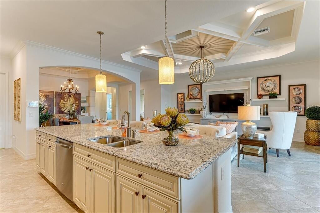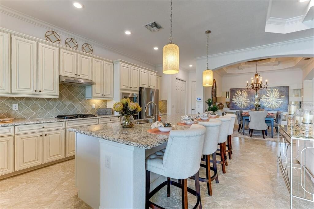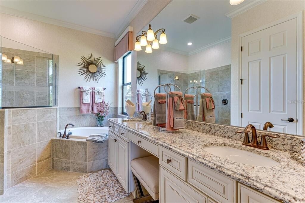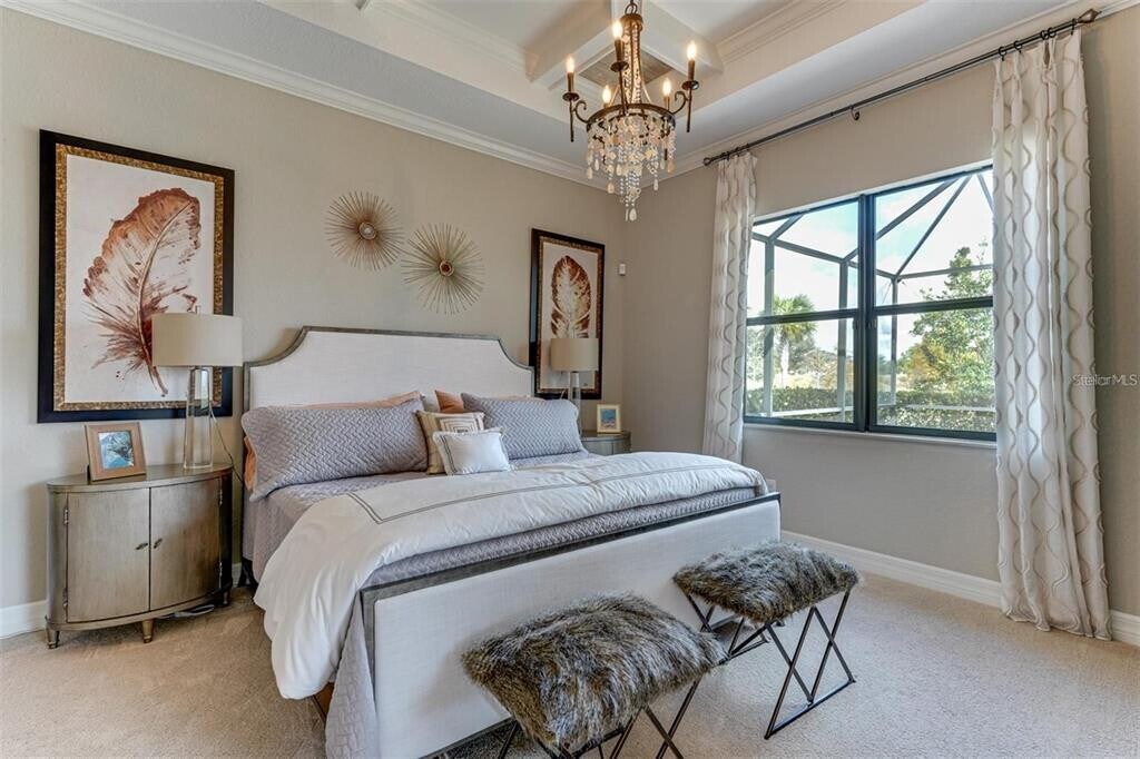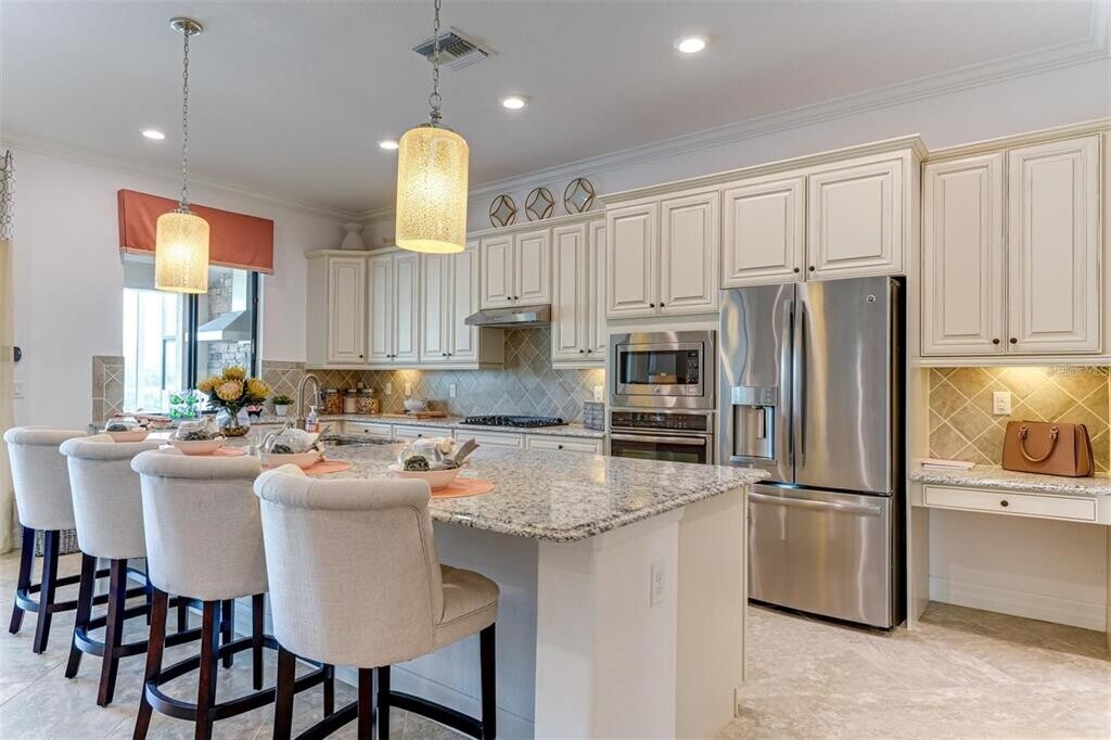 Welcome to Paradise! Be our guest and surround yourself in style and elegance in this former model home located in the Golf Community of Lakewood National. This property has everything you need. The master suite offers a beautiful ensuite bath with double sinks,large walk-in shower and soaking tub with private access to the lanai. The second bedroom offers a queen bed with bath close by. The third is an office/bedroom with a large desk,custom built in shelving and a queen pull out sofa that can be used for additional guest quarters. This stunning home lends itself to fun and entertainment with an open floor plan and upgrades galore. Enjoy the magnificent view of the lake and the Arnold Palmer designed championship golf course as you relax and unwind in the tropical oasis from your own private heated pool and spa. Also features an outdoor kitchen with built in grill! Navigate the 36 hole Arnold Palmer designed unique and challenging GOLF COURSE. Amenities also include an on-site TIKI BAR/RESTAURANT,FITNESS CENTER,RESORT STYLE SWIMMING POOLS WITH OUTDOOR GRILLE AND POOLSIDE SERVICE,A FULL SERVICE SPA,TENNIS COURTS,PICKLE BALL AND MORE! Golf/Amenities Membership transfer is available. Conveniently located to the interstate,University Town Center Mall,Sarasota Airport and all that Lakewood Ranch has to offer including Lakewood Main Street with dining,shopping,miniature golf,movie theatre,monthly Music on Main Street,Cultural Arts in downtown Sarasota and St. Armand's Circle and our stunning gulf beaches. MLS# A4688024