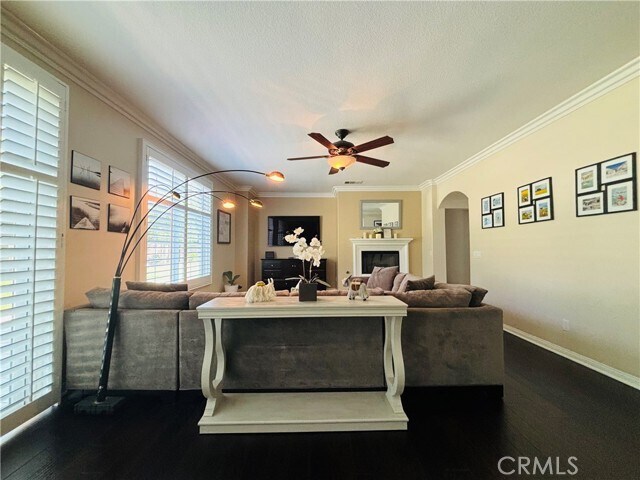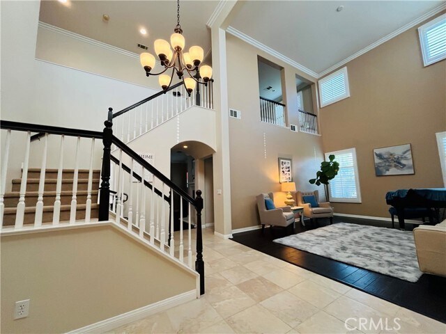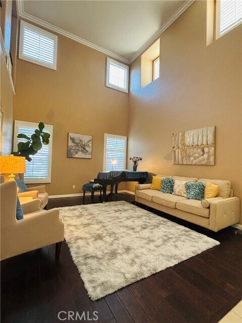 This exceptional residence is nestled in a premier cul-de-sac location, offering architectural elegance and abundant natural light. The formal living room boasts soaring ceilings, complemented by rich dark hardwood floors and elegant 18-inch ceramic tile. Granite accents and crown molding enhance the sophisticated ambiance, while plantation shutters add timeless style throughout.A butler’s pantry connects the formal dining area to the stunning eat-in kitchen, which opens seamlessly to a gracious family room with a cozy fireplace. The main level includes a bedroom and full bath, while dual staircases lead to an inviting media loft upstairs. The luxurious primary suite features a spacious walk-in closet and a master bath with a jetted tub. Additional storage can be found beneath the stairs.The exterior is framed by professionally designed, park-like grounds on a king-sized lot that is pool-ready. An oversized stamped concrete patio—plumbed for a gas barbecue—plus a glass fire pit create an ideal setting for outdoor living.Enjoy mountain views and the benefits of the highly regarded Etiwanda School District, with nearby Legacy Park, Olive Grove Park, bridal paths, and Victoria Gardens.(small garage will NOT be provided to the tenant,it will be used as storage space by the landlord) MLS# TR25181842