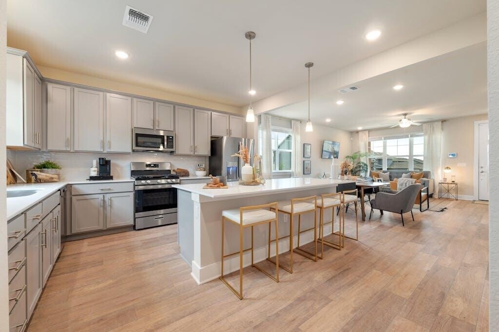 This unit has been a model home for 2 years and is now available for rent.Features open living floorplan with granite countertops, stainless steel appliances, and professionally landscaped yards. All bedrooms are upstairs, including large master bedroom with private bathroom and walk in closet. This unit also includes detached a garage, and outdoor sitting area. This unit is in the Goodnight Ranch neighborhood with amenities including community pool and shaded pavilion, creative playscapes for kids, multiple community pocket parks, access to 120 acres with trails and open space inside the community and 555 acres nearby in the Onion Creek Metropolitan Park, trail system with native landscaping, and peaceful community ponds. Located just minutes from downtown Austin, Goodnight Ranch is close to everything. Recreation, shopping, dining, schools, and entertainment, Goodnight has it all.