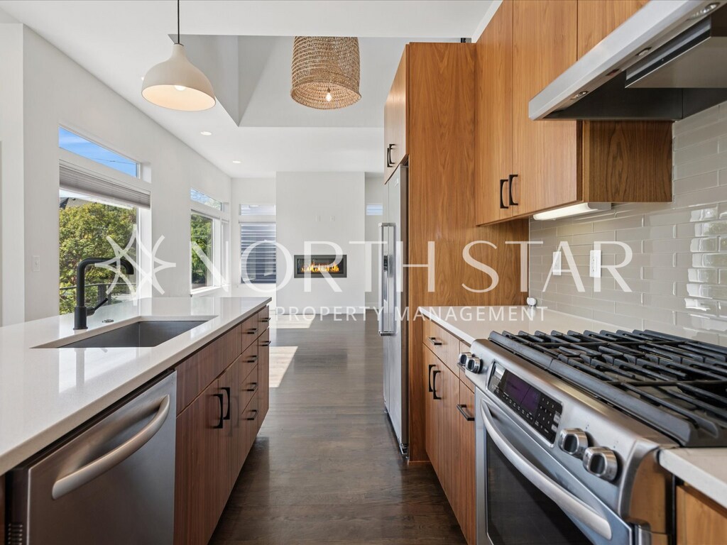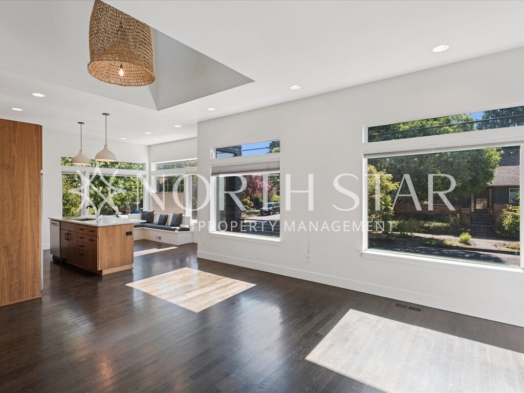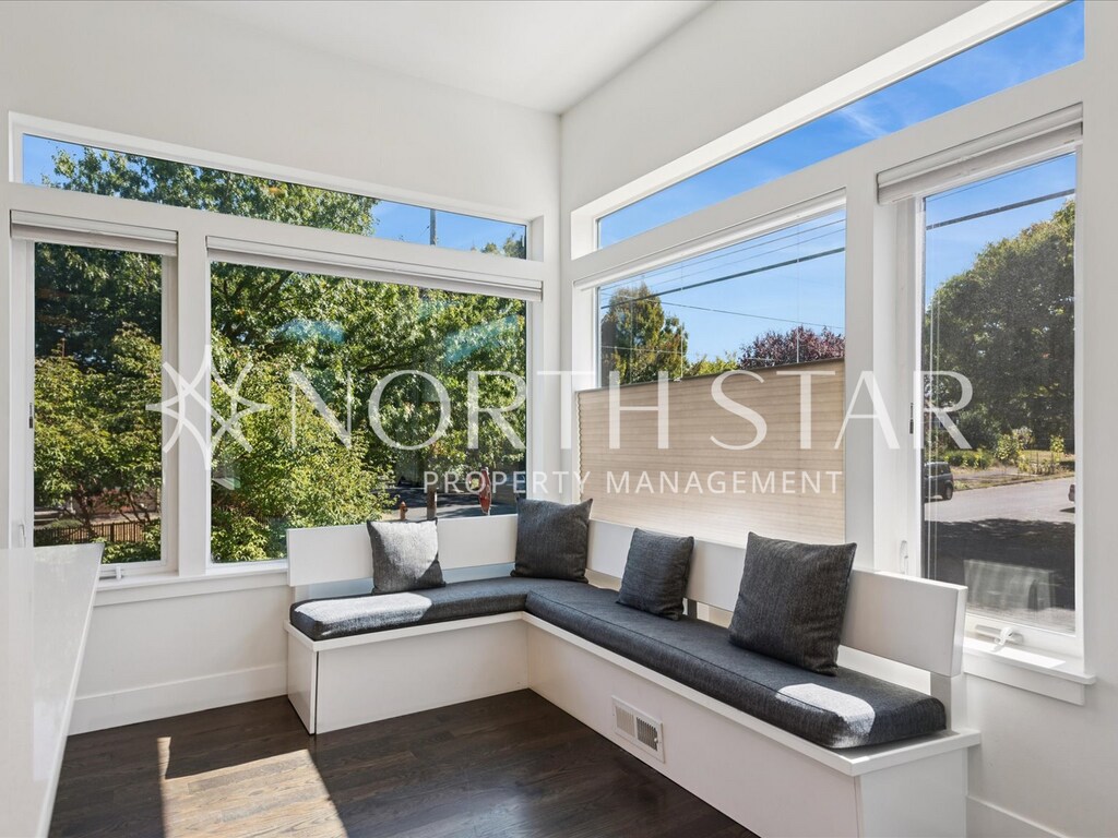 Get all the winter sunlight you need in this Contemporary Stunner. Enjoy impeccable craftsmanship by local builder, adaptable living spaces, vaulted ceilings, built-in dining, dual-owner's suites - one w/walk-in closet and private/covered patio. Plus, AC + cool lower-level family room w/built-ins and option to easily convert to legal ADU. The enormous windows bring in changing sky views. Quick access to Kennedy soaking pool, New Seasons, Alberta eats, public transit. You'll Love This Home!