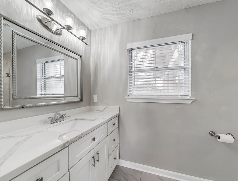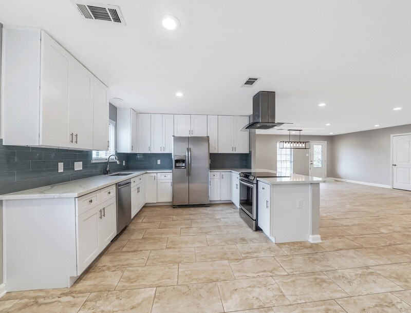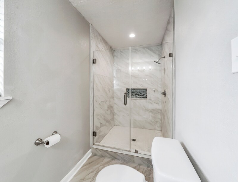 This residence features an open layout that effectively preserves bedroom privacy. The kitchen boast Quartz countertops, stainless steel appliances, and ample storage within its cabinets. The primary bedroom offers a spacious closet, an expansive shower, and built-in cabinetry. Original hardwood floors grace all three bedrooms. The living room provides a captivating view of the in-ground pool and is adorned with a stunning fireplace featuring a marble stacked-stone surround. For added seclusion, the study is equipped with sliding barn doors. The backyard pool guarantees privacy and is complemented by a complete garage bathroom. The enclosed driveway enhances the sense of privacy in this desirable neighborhood. Secure your viewing appointment today to ensure you don't miss out on this exceptional opportunity! No section 8/HUD.