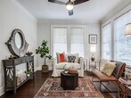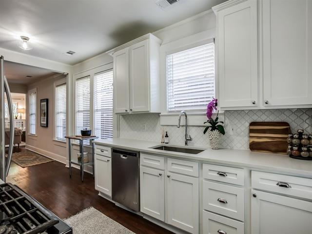 Welcome to this charming 3-bedroom, 3-bathroom home located in Dallas, TX. This renovated house features a wood-burning fireplace, fenced yard, private patio, and covered front porch for relaxing outdoors. Inside, you'll find hardwood floors, a custom tile kitchen backsplash, stainless steel appliances, and a staircase leading to the upper level. The bathrooms have been beautifully renovated with a stand-alone shower, garden tub, and pedestal sink. Don't miss out on the opportunity to make this house your new home. Also, don't forget to ask about our deposit free options!