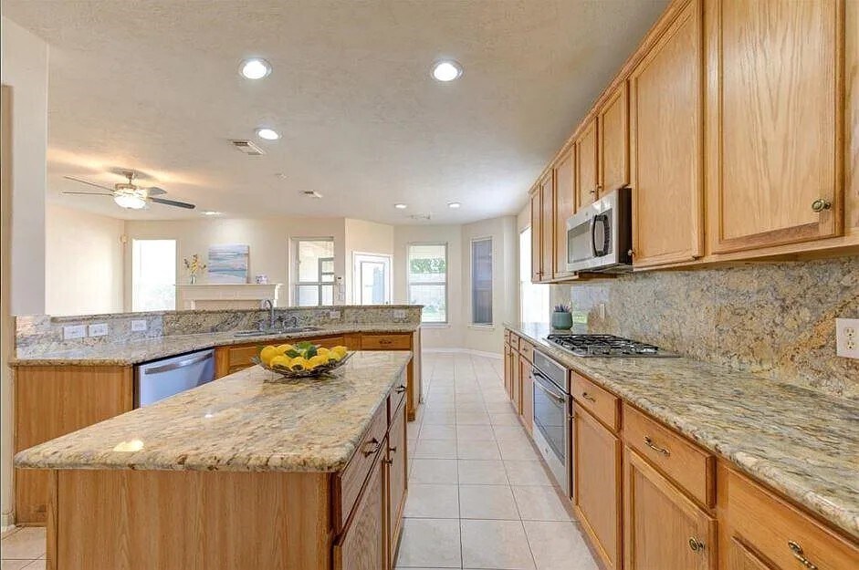 Outstanding two-story home with a beautiful curb appeal and no back neighbor for added privacy! Inside,you'll find high ceilings and large windows throughout while the 1st floor offers a tile entry,recessed lighting,new installed floor,a fireplace den and a bay window breakfast room,and a lovely island kitchen boasting granite countertops,ample cabinet and counter space,sprawling breakfast bar,and stainless steel appliances! Also downstairs with the utility room,half bath,and the spacious master suite featuring bay window,tray ceiling,dual sinks,whirlpool tub,separate shower,and huge walk-in closet! Upstairs holds the four spacious secondary bedrooms,two full bathrooms,and the open game room,perfect for entertaining! The backyard includes a covered back patio,added store room,and manageable yard space. MLS# 81287085