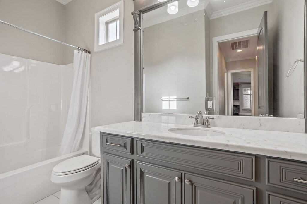 Beautiful 3-bedroom, 2-bathroom home for lease located in the desirable Greywood community. Built in 2015, this spacious home offers approximately 1,920 square feet of comfortable living space with high ceilings and abundant natural lighting throughout. The open living area features a cozy fireplace and a 55-inch TV already installed in the living room, creating the perfect space to relax or entertain. The kitchen comes fully equipped with modern appliances including a refrigerator, microwave, and gas range, making meal preparation convenient and enjoyable. This home also includes a washer and dryer, built-in shutters for added style and privacy, and a screened-in side porch that provides a great place to enjoy fresh air while staying protected from the elements. The attached garage offers convenient parking and additional storage. With its spacious layout, modern features, and bright, welcoming atmosphere, this Greywood home is a wonderful place to live.