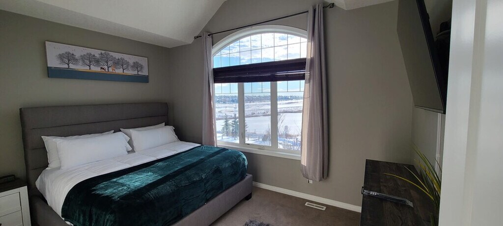 The advertised rate of C$14,310/month is the lowest available price, based on a 30 day(s) stay with a move-in date of October 16, 2026. Rates vary depending on the duration of stay, season, and other parameters. For exact pricing and additional pricing components, please visit our website and enter your desired move-in and move-out dates. The rate is applicable when billed upfront; it can be higher if billed in multiple payments. Welcome to your luxurious getaway, where lake views and upscale comfort await! Feel at home in this elegant retreat, just a short drive from the city. This elegant retreat features king-size beds, lavish furnishings, and top-notch amenities for a regal experience. Explore Chestermere Lake, approximately 0.5 km east, for boating, fishing, and swimming. Anniversary Park, approximately 1 km southeast, features a sandy beach and picnic areas. Lakeside Golf Club, approximately 2 km south, offers scenic views and well-maintained greens. John Peake Memorial Park, approximately 2 km southeast, is a lakeside park with picnic areas and playgrounds. Sunset Beach, approximately 1.5 km east, offers lake access and beautiful sunset views. Chestermere Bike Park and Chestermere Family Bike Park, approximately 3 km northeast, feature dirt jumps and trails for biking enthusiasts. This is a smoke-free and drug-free environment, and if any smoking or drugs are detected either within the home or outside on the property, then the reservation will be immediately terminated as non-refundable, all guests will be required to vacate the property, and compensation will be sought for any damages that are found upon inspection of the property. No pets are allowed in this rental unit, and guests will be responsible for paying for any and all damages caused by unauthorized pets. No parties or events are allowed, and if this rule is not followed, then the reservation will be terminated as non-refundable, all guests will be required to vacate the premises immediately, and compensation will be sought for any damages that are found upon inspection of the property. No excessive noise or loud music is allowed, and quiet hours start at 8:00 pm. If any noise complaints are reported by neighbors, you will be notified immediately and reminded of the quiet hour start time, and any second noise complaint after you’ve been reminded will result in your reservation being terminated, all guests will be required to vacate the property, and compensation will be sought for any damages that are found upon inspection of the property. If guests leave the home in a condition that requires a deep cleaning, an extra $250 cleaning fee will be required and charged. While there is no central air conditioning in the home, open windows and the ceiling fans keep the home comfortably cool. [SI]