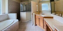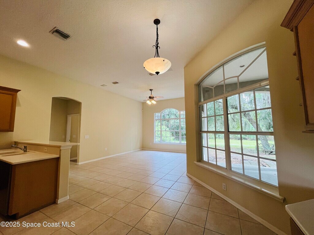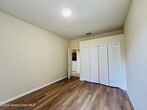 North Merritt Island! Updated!!! Spacious contemporary four bedroom two bath home. Fresh paint inside and out! Oversized three car garage and tons of parking space for all the toys - bring your cars,boat and RV! . Formal living room and dining room. Family room. Primary suite with bay windows,access to rear patio,walk-in closet and bathroom. Primary bedroom bathroom has garden tub,walk-in shower and large vanity with two sinks. Vaulted ceilings. New luxury vinyl plank flooring in all bedrooms. Tons of storage space. Eat in kitchen with new stainless steel appliances,corian counter tops and lots of cabinets. Overized 3/4 on an acre lot. Inside laundry room with full size washer/dryer hook ups and mop sink. Owner would consider pets dogs. No aggressive breeds please. Lawn service included in the rent.