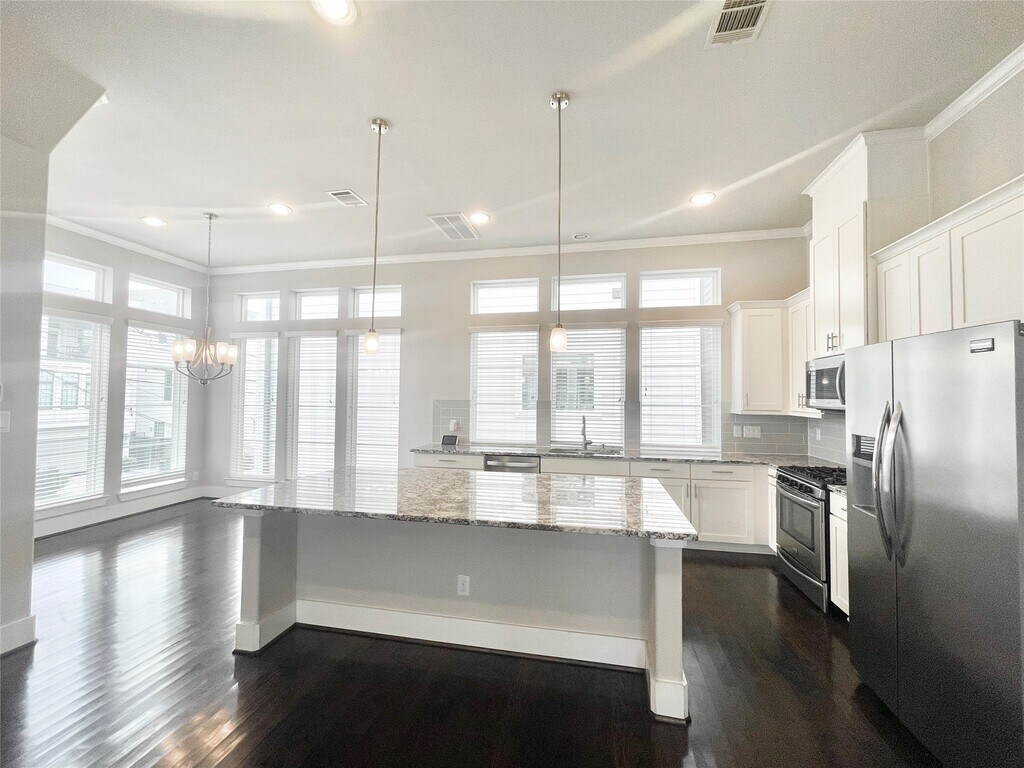 Modern/Contemporary 3 story home in Cottage Grove. Huge Island kitchen open to the living area on the second floor w/high ceilings & an open layout. Balcony off the second floor living area. Spacious primary bedroom,Large master bathroom w/a massive dream closet,double vanity,separate walk-in shower and soaking spa tub. Home includes fine finishes,hardwood floors throughout,custom kitchen cabinetry,high end stainless steel appliances,granite c-tops in kitchen & marble in bathrooms. Floor to ceiling windows in the breakfast area and family room offering lots of natural light throughout,this is a corner front unit with a side yard and back yard. Great location that is tucked away but close enough to the Washington Corridor Bars and restaurants; Memorial Park,The Heights/ Bayou trails and Downtown. I-10 and 610 Highway access minutes away. All Appliances included along with a wine fridge. NO Carpet,and low maintenance. MLS# 50846552