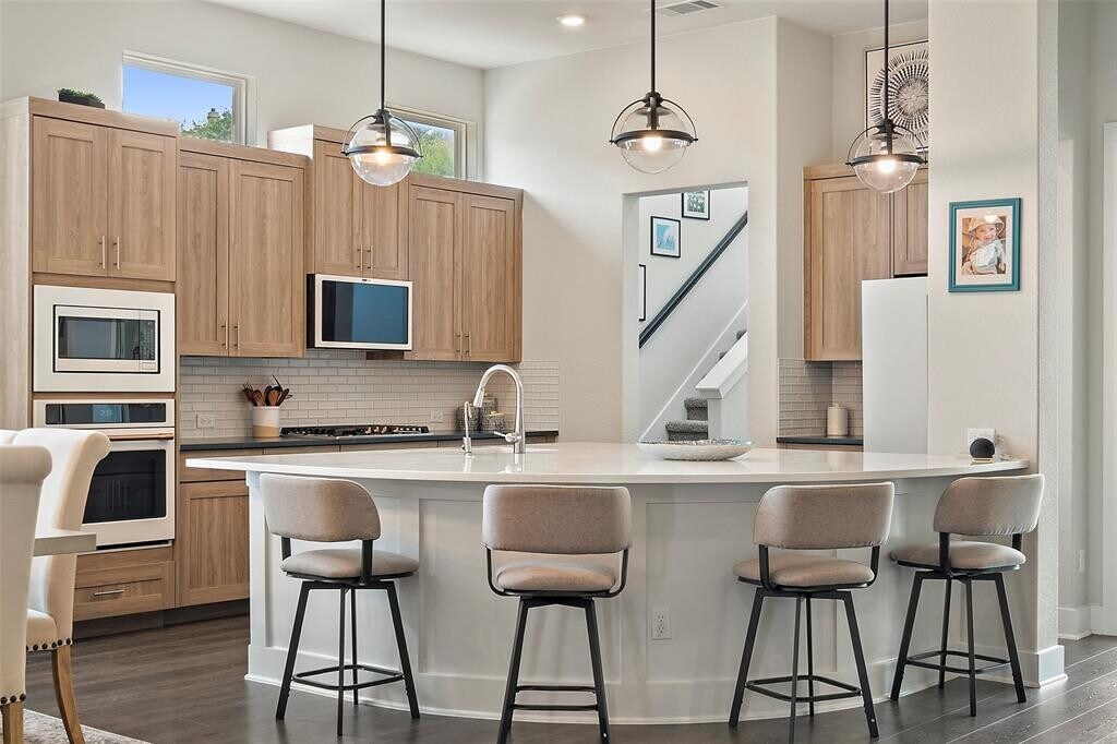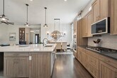 Experience luxurious Hill Country living with this exquisite mostly single-story home in the prestigious Sweetwater Ranch community in West Austin. This fully customized, former model home offers 4 beds and 3.5 baths with an Austin address and access to the acclaimed Lake Travis ISD schools. Built in 2020, this beautifully maintained property boasts striking stone and stucco masonry, complemented by craftsman-style design. The home features a two-car garage and an additional single-car garage, perfect for a workshop, gym or of course a third vehicle. Inside, the expansive open layout includes a formal dining room, large living area, secondary bonus room upstairs, beautiful home office with modern glass doors, and a gourmet island in the kitchen that is open to everything. High ceilings, LED recessed lighting, and a cozy fireplace enhance the lux atmosphere with hand picked lighting fixtures and wood work. The chef-inspired kitchen is equipped with stainless steel appliances, granite countertops, and an oversized island with seating up to 6. Additional living space is extended on the back side of the home with the spacious cover patio, deck, and outdoor fire-pit. No neighbors behind also provides ample privacy! The primary suite presents a spa-like ensuite bath, walk-in closet, and walk in shower with dual vanities and soaking tub. Residents of Sweetwater Ranch enjoy resort-style amenities, including pools, a clubhouse, tennis courts, a fitness center, and more. With easy access to 71, you're minutes from hill country destinations, shopping, and just 21 miles from Downtown Austin!