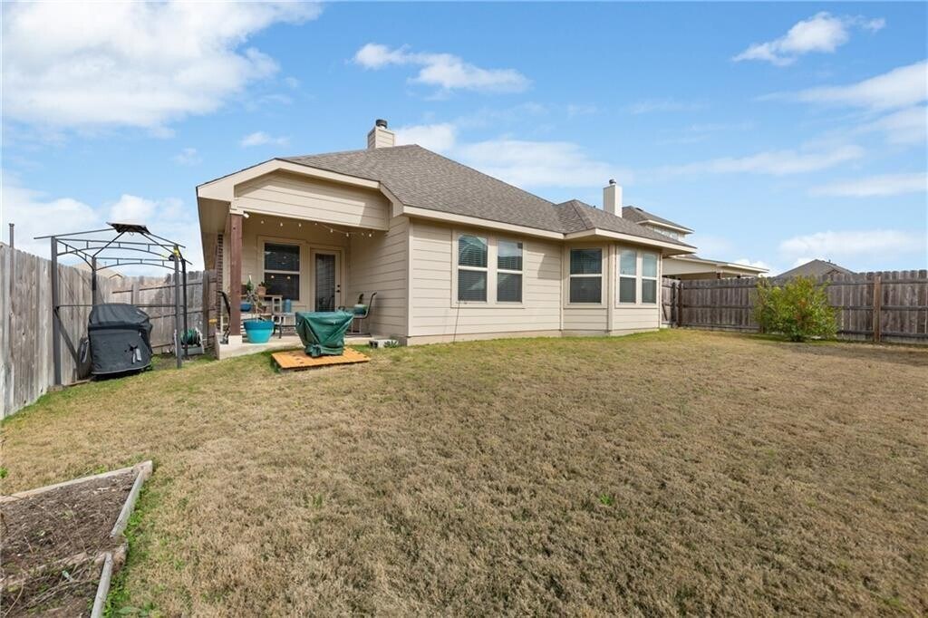 Beautiful 3 Bed 2 Bath with Flex Space for optional Office or 4th Bedroom in the Siena Community of Round Rock. An excellent use of 2,197 sqft, with a Formal Dining room space near the entrance (optional Study or flex space), anchored by a large Center Island Kitchen and large dining area in the middle, spare bedrooms with their own hallway to the side, and the oversized Bay Windowed Primary bedroom to the back. Designer features include granite and stone counter tops, oil rubbed bronze plumbing and light fixtures, stainless steel appliances, ceiling fans in all bedrooms, recessed lighting, a limestone incased fireplace with a stone mantle accent, and 2 inch faux wood blinds throughout. Need a little extra storage space?...the shed included in the backyard provides room for the yard equipment and free up space in the garage. Convenience is key at this property...the Veterans Hill elementary school is located within the community with other Hutto ISD schools just a short drive away...a few blocks away are the South Siena community amenities with the N Siena amenities a quick trip up the road...and easy access to HWY 79 & Toll 130 means a quicker commute to N Ausitn - Round Rock - Pflugerville employers. Want to get out and play?...Kalahari, Dell Diamond, Olds Settlers Park, Round Rock Multipurpose Complex, and many other restaurants and shopping options are just minutes away. MLS ID 1816407