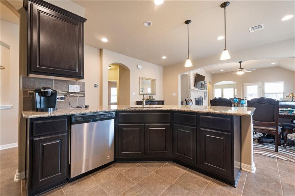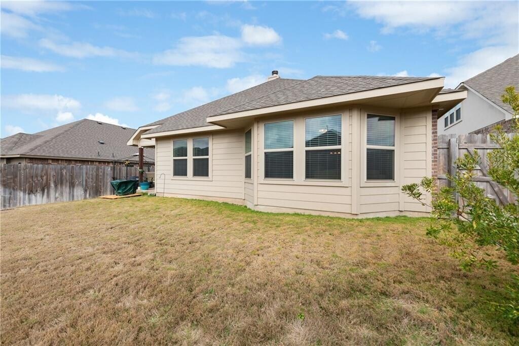 Beautiful 3 Bed 2 Bath with Flex Space for optional Office or 4th Bedroom in the Siena Community of Round Rock. An excellent use of 2,197 sqft, with a Formal Dining room space near the entrance (optional Study or flex space), anchored by a large Center Island Kitchen and large dining area in the middle, spare bedrooms with their own hallway to the side, and the oversized Bay Windowed Primary bedroom to the back. Designer features include granite and stone counter tops, oil rubbed bronze plumbing and light fixtures, stainless steel appliances, ceiling fans in all bedrooms, recessed lighting, a limestone incased fireplace with a stone mantle accent, and 2 inch faux wood blinds throughout. Need a little extra storage space?...the shed included in the backyard provides room for the yard equipment and free up space in the garage. Convenience is key at this property...the Veterans Hill elementary school is located within the community with other Hutto ISD schools just a short drive away...a few blocks away are the South Siena community amenities with the N Siena amenities a quick trip up the road...and easy access to HWY 79 & Toll 130 means a quicker commute to N Ausitn - Round Rock - Pflugerville employers. Want to get out and play?...Kalahari, Dell Diamond, Olds Settlers Park, Round Rock Multipurpose Complex, and many other restaurants and shopping options are just minutes away.