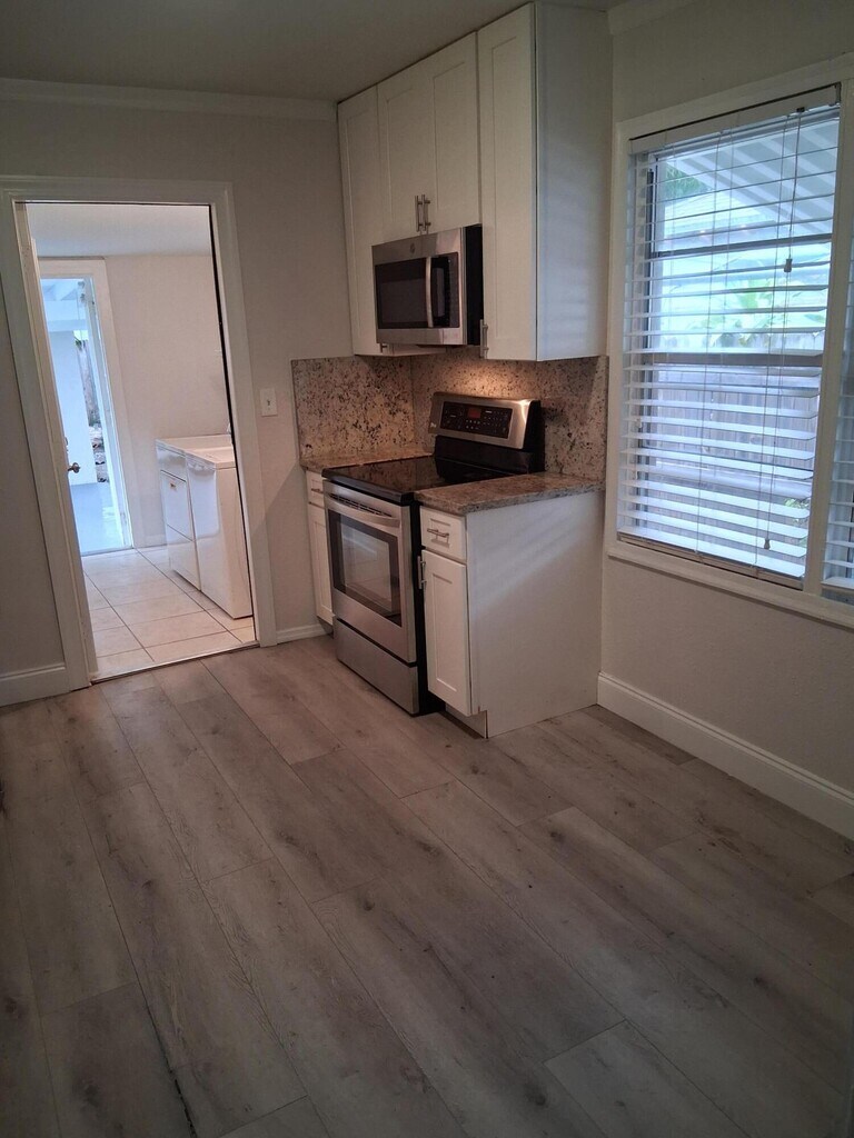 3 Bedroom 2 bath single family house on a large corner lot in a tree lined peaceful neighborhood. House has a great floor plan with wood laminate floors. Central AC and paddle fans. Bathroom has been remodeled including walk in shower. Updated kitchen has granite countertops/backsplashes and under countertop mount stainless sink and new appliances. Laundry room features full size washer and dryer. Plenty of additional storage in hallway storage cabinet and separate closet. Attached breezeway leads to 2 car covered car port and large utility storage room. Additional uncovered parking for 2 vehicles in the driveway. Close to popular Cityplace and downtown area,beaches,shopping,I-95 and 5 minutes from the airport. Sorry smoking not permitted and 650 minimum credit score is required. MLS ID R11089846