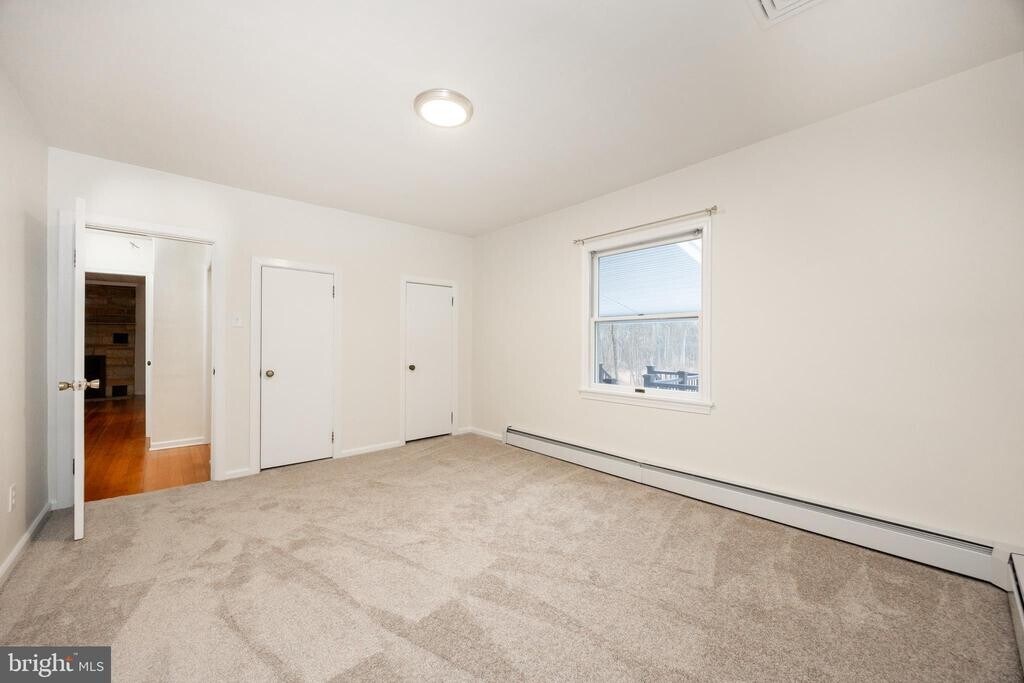Nestled on over two picturesque acres, this beautifully renovated one-story ranch offers space, privacy, and modern comfort in a serene setting. Completely remodeled inside and out, the home blends timeless charm with today’s most desirable updates. The kitchen is thoughtfully designed with shaker cabinets, Corian countertops, an undermount sink, and a full suite of appliances including an electric stove, built-in microwave, stainless steel refrigerator, and dishwasher. Easy-care Pergo flooring enhances functionality, while a quaint built-in hutch adds character and storage. Just beyond, a large sunken dining area creates an inviting space for everyday meals or special gatherings. The living room features hardwood floors and a striking fireplace, providing a warm and welcoming focal point. A separate family room offers tile flooring, abundant natural light from multiple windows and a skylight, a ceiling fan, and generous closet space—ideal for relaxing or entertaining. The primary suite is impressively sized, showcasing brand-new carpeting, double closets, and a private ensuite bath. The bath is finished with tile flooring, a walk-in shower with tile surround, and a white vanity topped with marble. Three additional bedrooms provide comfortable accommodations or added office space, while the hall bath includes a tile floor, tub, and classic pedestal sink. A full unfinished basement offers extensive storage and flexible space. Additional highlights include a two-car garage, a large patio complemented by a deck, and an exceptionally private yard surrounded by open land—perfect for enjoying the outdoors in peace. This rare rental combines acreage, privacy, and high-quality renovations in a single-level home that truly stands out.