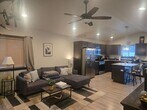 Beautiful newer single-level home located in Spirit Lake with a fenced backyard and modern finishes throughout. This home offers a bright, open-concept layout that feels spacious and welcoming the moment you walk in. The kitchen features dark cabinetry, stainless steel appliances, a large center island with seating, and opens seamlessly into the living and dining areas. Vaulted ceilings, recessed lighting, and ceiling fans add to the open feel, while durable LVP flooring runs throughout the main living spaces. The living area opens to the backyard through a sliding glass door, leading to a concrete patio and private, fenced yard—perfect for relaxing or entertaining. The backyard is level and low-maintenance, with a clean, modern vinyl fence. The home includes 3 bedrooms and 2 bathrooms, with clean, modern bathrooms and quality finishes. An attached garage provides additional storage and convenience. Located in a quiet neighborhood with easy access to Spirit Lake amenities, schools, and outdoor recreation. Terms: Rent: $2,300 month Security Deposit: $2,300 Lease Length: Lease till summer 2027, renewable annually Utilities: Tenant is responsible for all utilities Application Information: After viewing the home, all persons 18 years of age or older who will reside in the property must submit a separate application. Applications are to be filled out via our website. Application fee is $30 per applicant. Additional Policies: Sorry, no cats. One dog might be permitted. No smoking or vaping permitted anywhere on the premises. We do not rent sight unseen. Applicants must view the home and neighborhood before applying. Please drive by the property first, then contact Lakeside Property Management to schedule a showing.