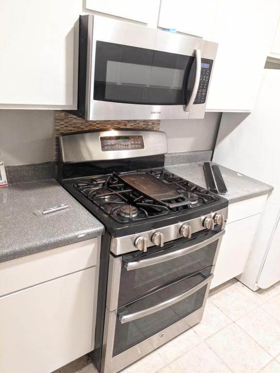 Renovated duplex available for immediate move in. Fantastic floor open plan, 3 bedrooms, 2 full bathrooms, very large backyard is fully fenced and private. Fresh paint and countertops. Stainless steel gas range/oven with 5 burners plus griddle/grill attachment, and double oven. Built-in microwave over the range. New bathtubs and tile shower surrounds. Central air conditioner/heat. No carpets anywhere--tile flooring throughout. E energy efficient LED light fixtures throughout. Minutes from downtown and major shopping. Very close to McKinney Falls State park. Last unit on the street, very tranquil. Trees/wooded greenbelt area and creek next door and to the back of yard. Private storage room attached to covered carport. Google Fiber internet access/TV service available.