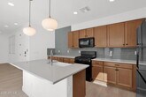 Welcome to this beautifully upgraded 3 bedroom,2.5 bath,2 car garage single family home in Laveen! This 2yr new home boasts contemporary high end finishes throughout,LVP flooring downstairs & stairs,stylish fixtures and a well appointed open kitchen designed for everyday living and entertaining. The primary suite provides a comfortable retreat with a spacious layout,modern bath ensuite & walk in shower. The secondary bedrooms are well sized,versatile and perfect for home office or additional living needs. Enjoy low maintenance living with landscaped yard space. The home is energy efficient with ceiling fans,window blinds,sun screens and regularly maintained AC unit. Conveniently located near freeway,shopping & dining. Home is located next to community greenbelt. Community pool!