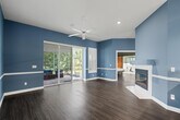Spacious 2BR + Den, 2BA CBS corner lot home w/2-car garage in the gated 55+ community of Kings Isle (Isle of Capri). Features volume ceilings, split floorplan, eat-in kitchen w/breakfast bar and pantry, vinyl/tile flooring, fireplace, and plantation shutters. Primary suite offers walk-in closet, roman tub, dual sinks, and a separate shower. Recent upgrades include new kitchen cabinets, new flooring, new roof, and updated plumbing--all within the past 24 months. Screened patio overlooks a shaded tree-lined backyard. Full storm protection with accordion and panel shutters. Pet-friendly. Resort-style amenities: a clubhouse, pool, fitness center, tennis, billiards, and more. HOA covers lawn care, cable/internet, and security. Close to shopping, medical, dining, I-95. Owner covers HOA Deposit.