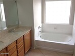 Nestled on a greenbelt,this remarkable five-bedroom residence offers quick access to playgrounds and the community pool. Every inch of this home has been thoughtfully upgraded,featuring elegant granite countertops,20'' porcelain tile and sleek stainless steel appliances. Enjoy outdoor living on the paver patio and benefit from upgraded cabinets and ample storage in the garage. The expansive master suite is a true retreat,complete with a separate tub and shower,dual sinks with framed mirrors,and a spacious walk-in closet. The split floor plan allows for privacy with bedrooms upstairs and a bright,open living area downstairs,perfect for entertaining. Don't miss out on this exceptional home!