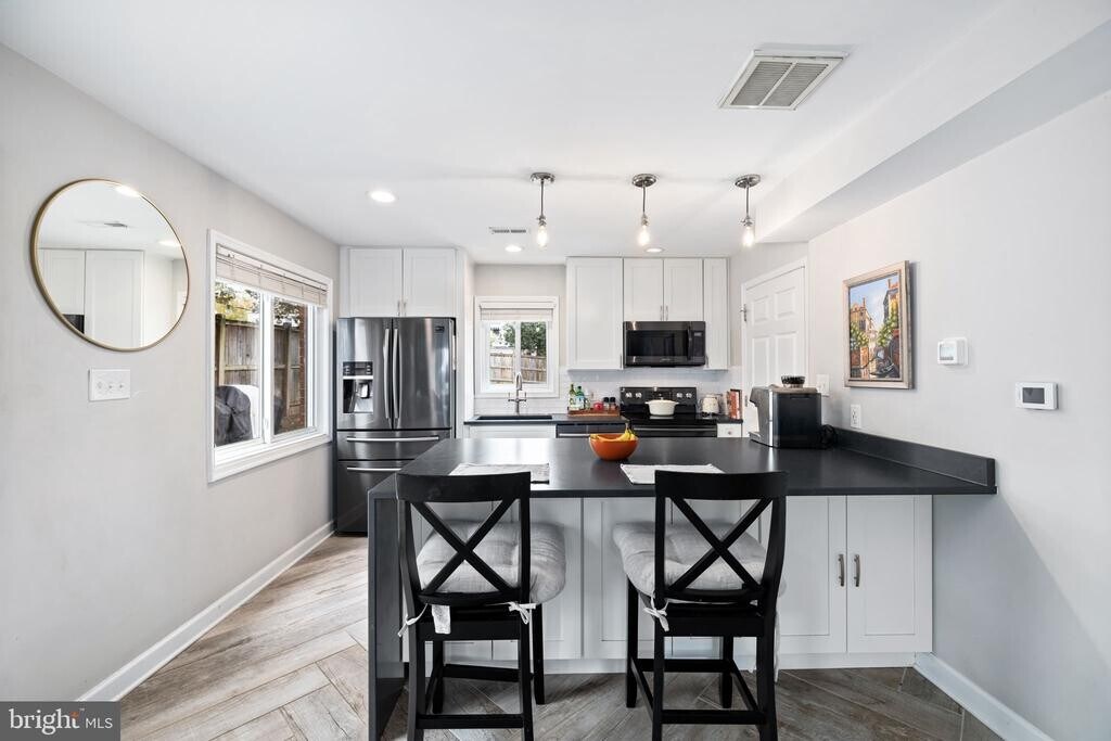 Beautifully renovated semi detached 2 Bedroom and 1.5 Bath! Main level layout includes half bath, huge kitchen island with sitting area, sunlight family room and a laundry room /pantry! Upgrade quartz countertops, stainless steel appliances, herringbone tile main level, sand and finish hardwood upper level, renovated full bath upstairs! Great layout! Wait until you see the exterior which includes a very large fully fenced in backyard with a wraparound concrete patio! Upgrade concrete driveway for multiple cars and the yard is perfect for entertaining, pets or gardening! This home is gorgeous!