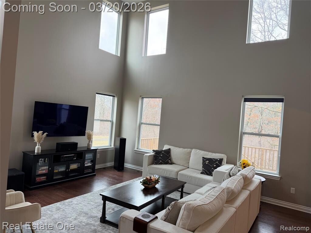An exceptional opportunity awaits at 58206 Sunflower CIR N, situated in Lyon Charter Township, MI. This single family residence, constructed in 2015, is presented in great condition and stands as an attractive property ready for its new occupants. The expansive open floor plan creates an inviting atmosphere, perfect for gathering and comfortable living. Within this generous layout, the living room distinguishes itself with a high ceiling that enhances the sense of space, complemented by a welcoming fireplace that provides a focal point for relaxation and warmth. Culinary aspirations find their perfect setting within the well-appointed kitchen, designed for both everyday functionality and grand entertaining. It features a large kitchen island, providing ample workspace and a central gathering point, alongside elegant stone countertops. The convenience of a double oven and a dedicated stovetop supports a wide range of cooking endeavors. The thoughtfully designed bathrooms offer spaces for rejuvenation and practicality. Each features a double vanity, ensuring ease and comfort, while a tiled walk in shower provides a refreshing experience and a tile tub offers a tranquil escape. Four serene bedrooms provide peaceful retreats, each offering a private sanctuary. The refinement of crown molding graces these spaces, adding a touch of classic elegance, and a spacious walk-in closet ensures abundant storage for personal belongings. Beyond the interior, dedicated outdoor spaces beckon for enjoyment and leisure, including a welcoming porch, a comfortable patio, and an elevated deck. A charming fire pit invites memorable evenings under the stars, while the dedicated laundry room adds a layer of convenience to daily routines. This single family residence presents a remarkable living experience designed for comfort and enjoyment. This subdivision offers a community pool, clubhouse, gym, tennis and basketball courts, walking trails and ponds. BATVAI.