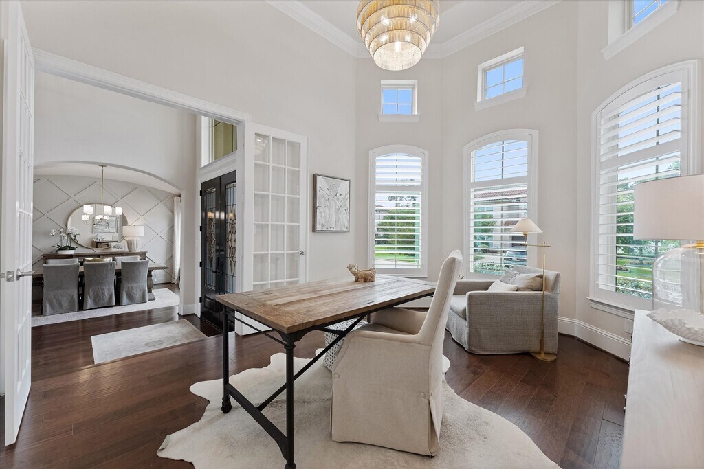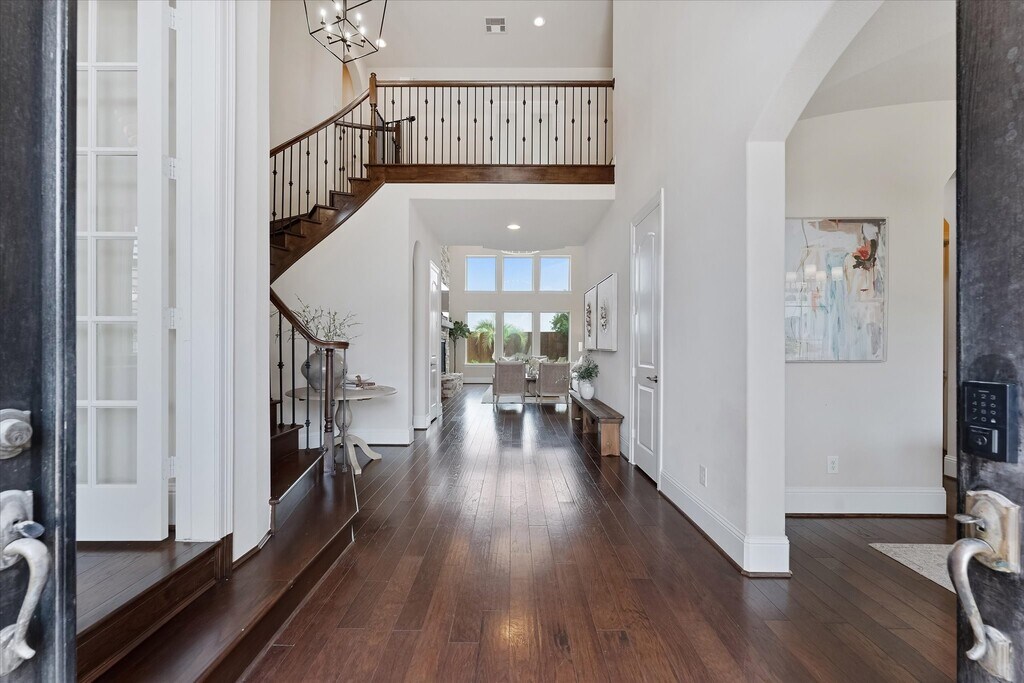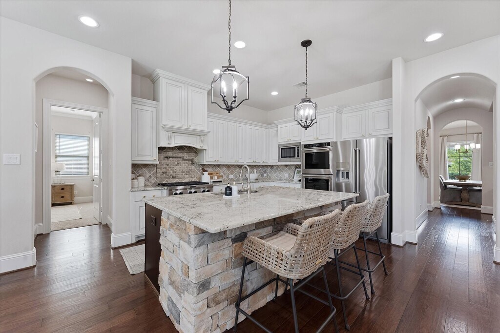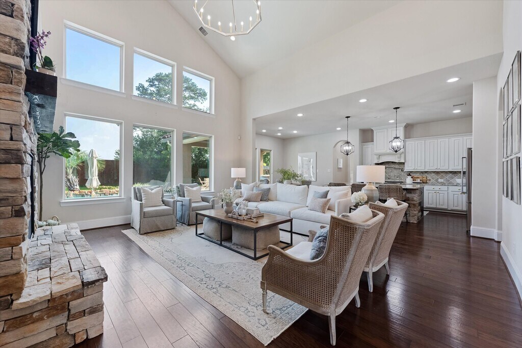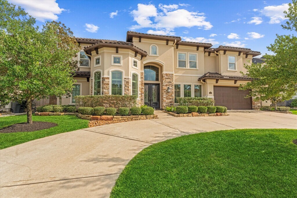 Luxury home in prime location! This gorgeous Mediterranean style home has 5 bedrooms,4.5 bath and a pool. Dramatic entry with winding staircase,elevated study,formal dining with feature wall,and soaring ceilings in the living room. Kitchen has large island,double ovens,large walk-in pantry and butlers pantry. Beautiful custom light fixtures throughout,wood floors,and floor to ceiling stone fireplace. Large sized upstairs game room and additional media room. Three car garage with overhead storage,epoxy finish flooring and large circular driveway. Backyard has a covered patio with an outdoor kitchen,Fire Magic grill,pool and hot tub- perfect for entertaining! Refrigerator,washer & dryer stay. Located just minutes from 99/Grand Parkway,The Woodlands shopping and restaurants,and Exxon Mobil. MLS# 96755832