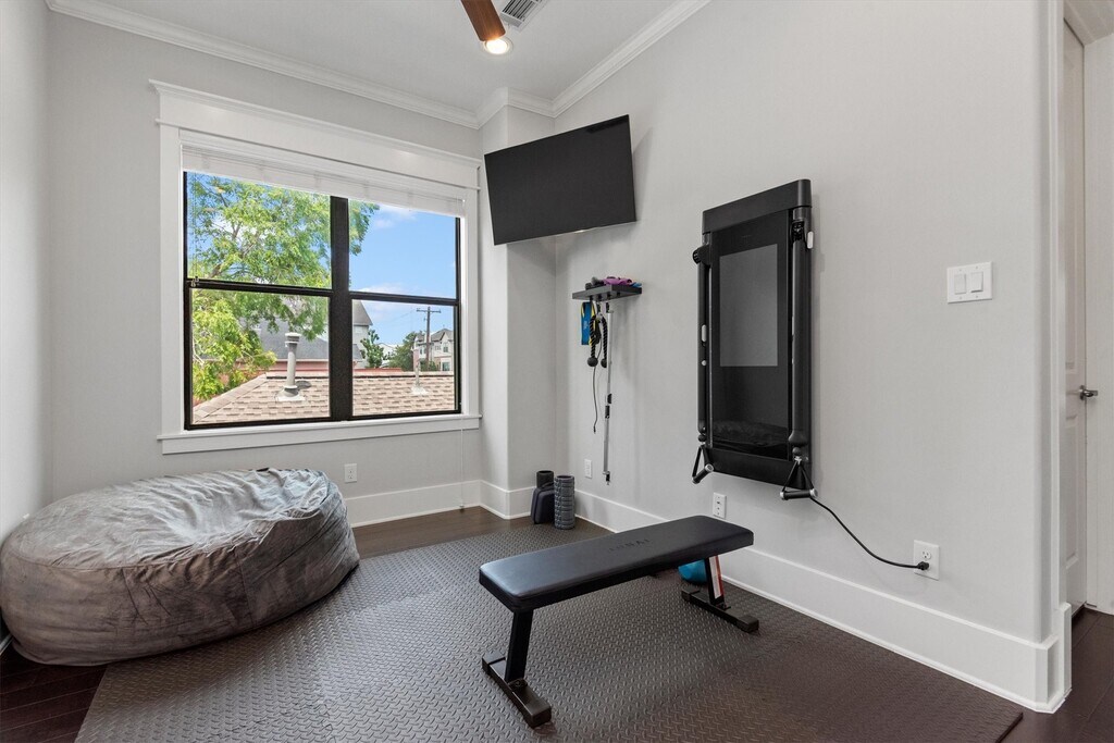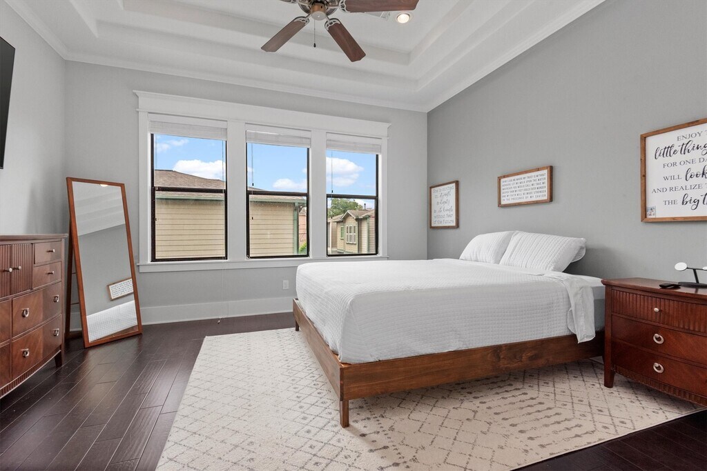 Step into this exquisite three-story home in coveted Cottage Grove. With 12' ceilings,four bedrooms,and a gourmet kitchen with gas range,this residence exudes elegance and modern comfort. The open living area boasts wood floors,crown molding,and ceiling fans,creating a warm ambiance. Outside,enjoy a fenced backyard,covered patio,firepit,hottub,and outdoor kitchen. Conveniently located near major freeways and Houston attractions,this home offers luxurious indoor spaces and exceptional outdoor living. MLS# 26206630