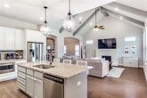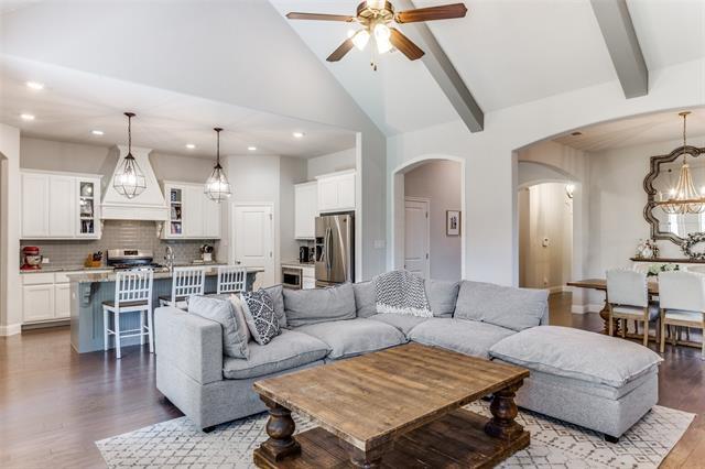 Built in 2018 by Clarity Homes, this thoughtfully designed 3-bedroom, 2.5-bath home with a dedicated study offers timeless curb appeal, enhanced by a charming covered front porch. Step inside to a spacious, open-concept layout that blends functionality with style. The living room, dining area, and kitchen are seamlessly connected yet well-defined — perfect for both everyday living and entertaining. Soaring vaulted ceilings with beams and Clarity Homes’ signature archways add architectural elegance throughout. The living room centers around a gas fireplace, while the kitchen is a chef’s dream featuring a gas range, an oversized island with pendant lighting, abundant cabinetry, and a walk-in pantry. Split bedrooms provide a private primary bedroom at the back of the home. The primary suite boasts high ceilings, double vanities and a separate shower and soaking tub. Step outside to a covered back patio overlooking a generously sized backyard — ideal for relaxing or hosting guests. Built in mud lockers are conveniently located near the garage entry. Don't miss the oversized storage closet. Rear-entry garage for added privacy and curb appeal.