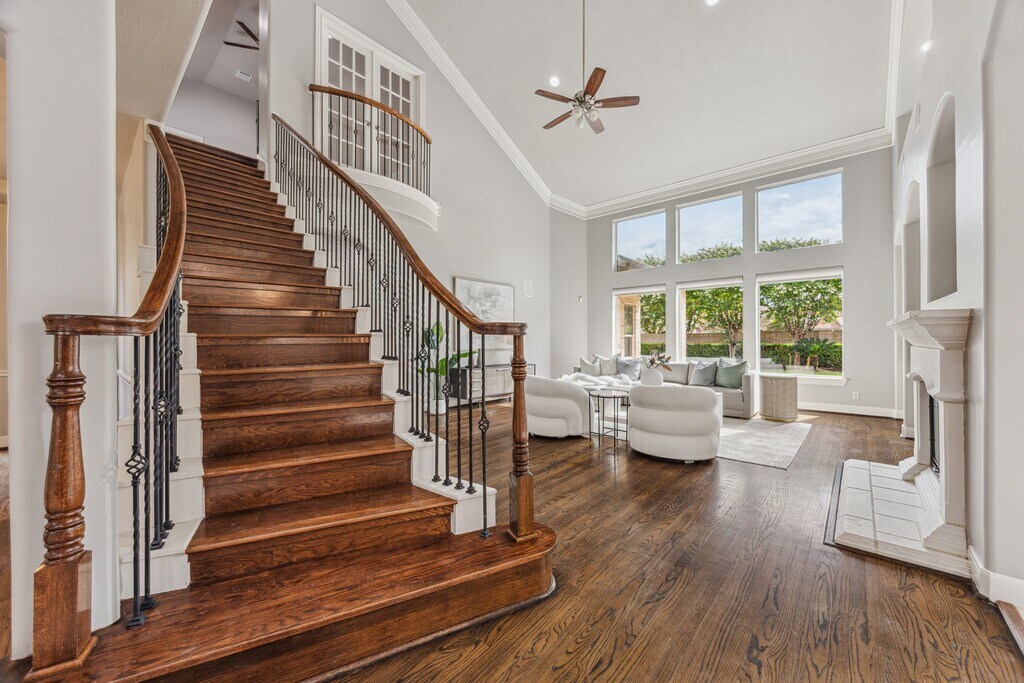 Modern updates with timeless elegance. You're greeted by stunning matte marble flooring,soaring ceilings,refined millwork,and updated lighting that sets the tone for a sophisticated yet comfortable home. The layout is ideal for entertaining,offering a formal dining room,double-height family room with fireplace,and large updated kitchen featuring dramatic marble countertops,a sleek waterfall island,and SS appliances including a built-in refrigerator. The first-floor primary suite includes a sitting area and a luxurious spa-inspired bath with rich marble finishes,a freestanding tub,dual vanities,and a spacious walk-in closet connecting to the laundry room. Upstairs offers a generously sized gameroom,spacious bedrooms with new carpet,updated bathrooms with quartzite. The third garage is climate-controlled,perfect for a gym or man cave. Speakers throughout,multiple patios,and a private backyard. Buses are available to Awty,British,and Village International Schools. MLS# 63251611