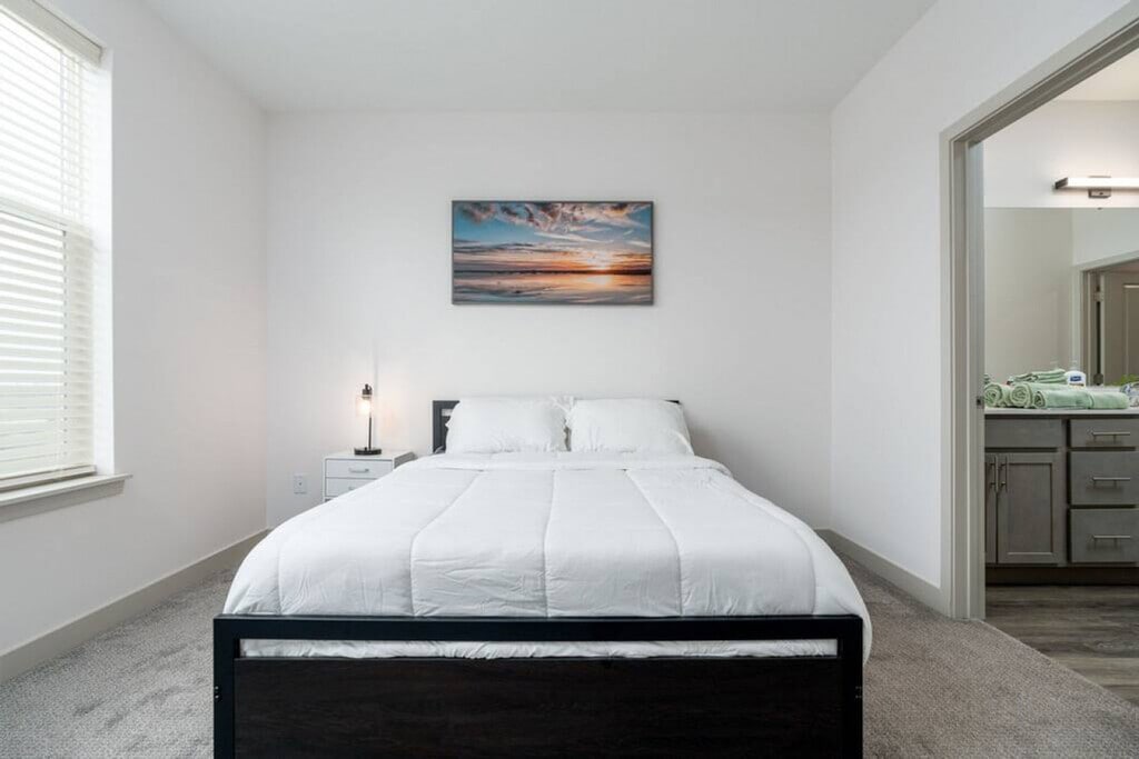 Indulge in a chic and convenient stay in this spacious, bright two-bedroom apartment in Whitestown, Indiana. Experience stunning sunsets from the comfort of your private patio, surrounded by beautiful mature trees. This apartment is perfect for business travelers and remote workers, offering a living room, kitchen, and laundry facilities. From the moment you step inside, you'll be greeted with stylish and modern decor, high-end finishes, and top-of-the-line amenities. The living room features a large and comfortable couch and a flat-screen TV, making it the perfect spot to relax after a long day. The fully equipped kitchen boasts high-end stainless steel appliances and everything you'll need to cook your favorite meals. The master bedroom features a queen-sized bed, luxurious linens, and a large en-suite bathroom with a walk-in closet and shower. The second bedroom also has a queen-sized bed and is just as comfortable and stylish as the master. Free parking is provided in front of the building. Located in a quiet and safe neighborhood, you'll be just minutes away from shopping, restaurants, and entertainment. With easy access to major highways, you're a short drive from downtown Indianapolis and its many attractions. Whitestown offers a variety of amenities and attractions, including restaurants, bars, shopping centers, parks, and cultural attractions. You can access the building through the main entrances. We ask that you be respectful of the home and community. You can have friends over but maintain noise and light discipline at all times. The home is not baby-proofed and hence may not be ideal for families with small children, however, children are welcome at your own discretion. Only registered guests can use the amenities and no outsiders and visitors are allowed. CCTVs and 24/7 security monitoring are in place to ensure compliance from everyone. Amenities are not for commercial use. Check-out time is 11 am unless otherwise approved. Absolutely no smoking, there's a $100 penalty fee for removing smoke detectors. No weapons, firearms, drugs, or illegal sexual activity of any sort allowed. Violators will be reported to police and the contract will be terminated immediately. Guests staying longer than 28 days will be responsible for paying for utilities used during their stay. There is a zero-tolerance policy for parties and smoking anywhere on the premises. All units come equipped with noise sensors. Following multiple warnings, local law enforcement may be utilized to ensure compliance. Should removal be required, it will be done at the guest's expense. Unapproved late checkout will result in a $50 charge for every hour after the scheduled checkout time. Smoking inside or outside on the patio/balcony, parking lot, or within 50ft of the property is strictly prohibited, as this is a smoke-free community. Any smell noticed by cleaners in the house, and/or any physical evidence of smoking any substance in the home will result in a fine of $300.00 to cover the cost of deep cleaning and ozone treatment. Parties and events are strictly prohibited. Any evidence of a party or event, including camera footage, excessive garbage, or other evidence will result in a fine of $500.00, legal action, and possible eviction without reimbursement, plus the cost of any extra cleaning or damages that result from the event. Unauthorized Animal/Pet Fee: $250.00. Any evidence of willful or negligent loss or damage to the property, furnishings, decoration, landscaping, towels, linens, or other items will be charged at direct replacement cost plus a fine of up to $300.00. Guests are required to keep towels and linens in good condition. Towels and washcloths should not be used to remove makeup or for cleaning purposes. Any permanent stains on towels or linens will fall into the category of negligent damage and are not included in the damage protection policy. Guests should not wash comforters or duvet comforters themselves as this can cause damage to those items and the washing machine. Any evidence of a guest breaking posted house rules, including exceeding the occupancy listed by the guest on the reservation, parking restrictions, pool rules, illegal substances, or use of the property can result in a fine of up to $1000.00 and/or eviction from the property. Potential for noise as this is a quiet residential neighborhood and building. Noise can transfer easily to neighbors through walls and floors. This apartment is suitable for business travelers and remote workers alike.