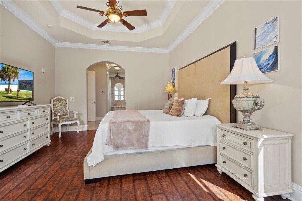Welcome to 5829 NW Zenith Dr, a beautifully maintained and furnished 4-bed, 3.5-bath home with an open layout, abundant natural light, high ceilings, and upgraded finishes. The gourmet kitchen offers stainless steel appliances and granite counters, flowing into bright living and dining areas that lead to a screened lanai. The spacious master suite features a walk-in closet and spa-style bath with dual vanities, soaking tub, and separate shower. Enjoy a private fenced yard with raised garden beds--perfect for growing fruits and veggies. Home includes solar panels; electricity paid to owner monthly ($250)