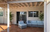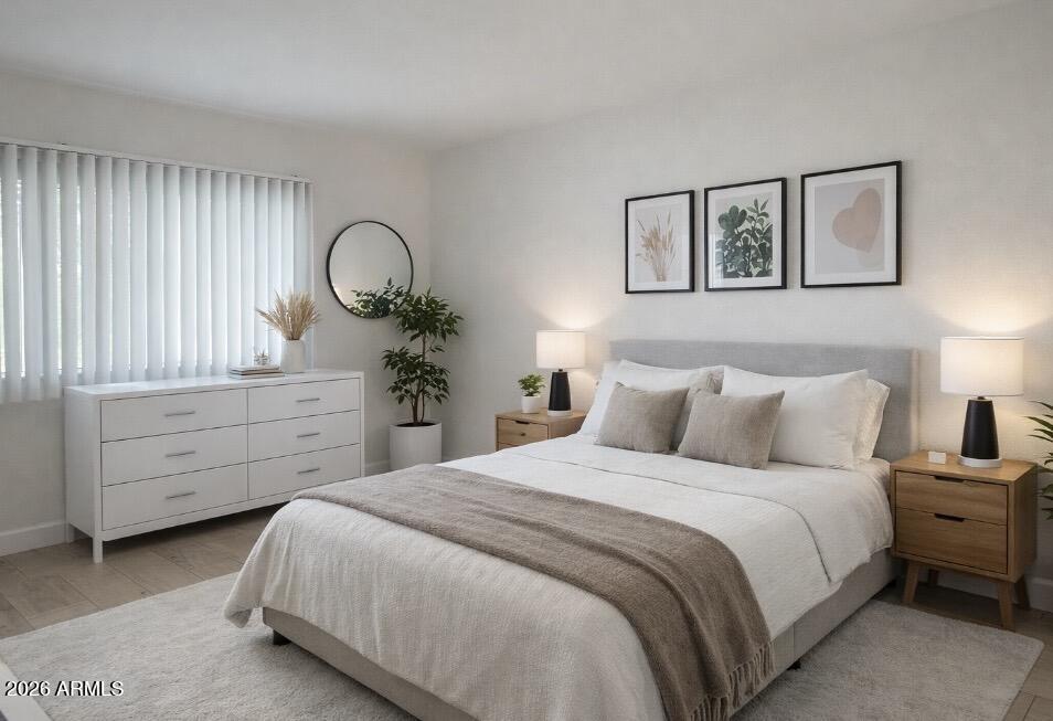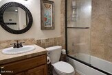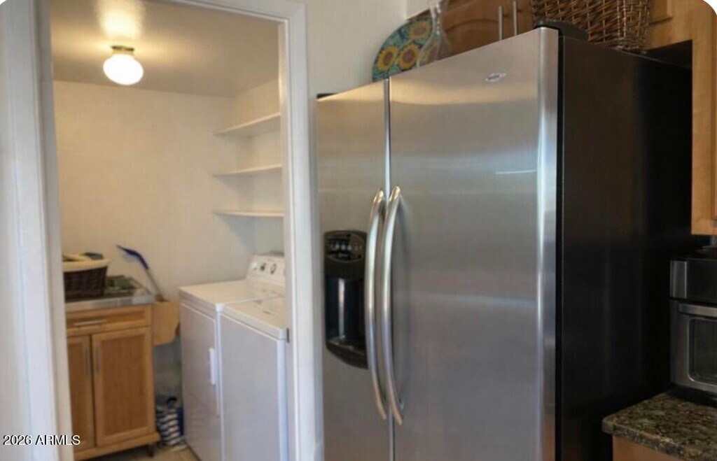 Great Townhome in Downtown Scottsdale while still in a quiet & serene area. This Townhome has been updated with New Wood-Plank Tile throughout the entire home!. Open bright kitchen with Granite Countertops. All matching Stainless Steel appliances including a Built-In Microwave. Laundry Room is right off the kitchen with extra storage above the washer/dryer LOTS of Pantry Shelves. Bathrooms are Gorgeous with Travertine Walk-in Shower in the master & a Travertine Bathtub with a Glass enclosure. Travertine Vanities in both bathrooms. Spacious bedrooms are separated for privacy. The outdoor patio is HUGE with a covered patio space lush greenery & outdoor locked storage. Two (2) Covered Parking Spots! Community Pool (heated part of the year) & Gym.