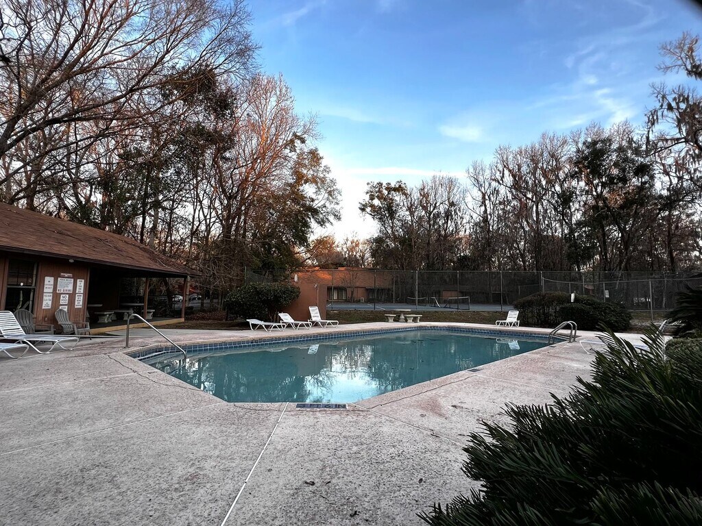 Welcome to this beautifully updated 3BR/3BA townhome in the desirable Rockwood Villas community, conveniently located off SW 62nd Blvd near The Oaks Mall, Butler Plaza, and plenty of dining options. This spacious rental offers a private courtyard entry, a large living room with laminate floors, and an upgraded kitchen featuring granite countertops and newer cabinets. The layout includes one bedroom and full bathroom downstairs and two bedrooms with private bathrooms upstairs—perfect for comfortable living or roommates. Enjoy the screened-in porch with washer/dryer (not warranted) and peaceful wooded views. Rockwood Villas offers great amenities including a community pool, sports courts, and convenient bus stops right at the community entrance. Upon approval, any decision not to execute the lease will result in a forfeiture of the “Holding Fee” which is equal to one month’s rent plus the forfeiture of the Administration Fee of $250. Call today to schedule a private showing before its gone!