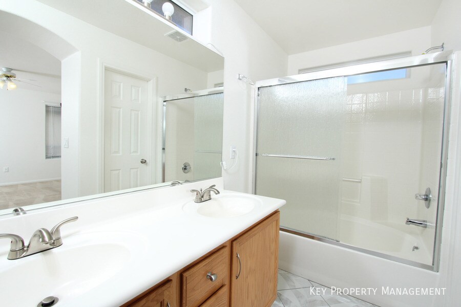 FANTASTIC 3 BEDROOM, 2.5 BATH HOME* 2 CAR GARAGE W/ CABINETS* FRONT DOOR OPENS TO SPACIOUS FLOOR PLAN W/ TILE THROUGHOUT DOWNSTAIRS* ISLAND KITCHEN WITH CUSTOM CABINETS & AMPLE STORAGE* LARGE MASTER BEDROOM W/ WALK IN CLOSET* REAR YARD RETREAT W/ STAMPED CONCRETE*