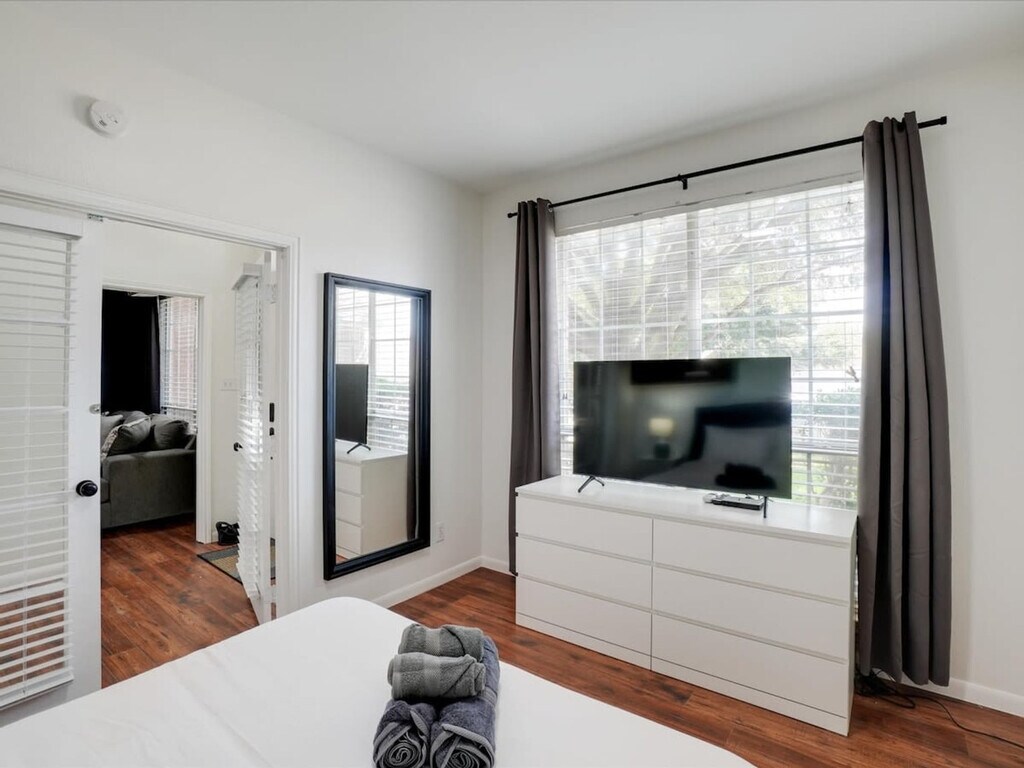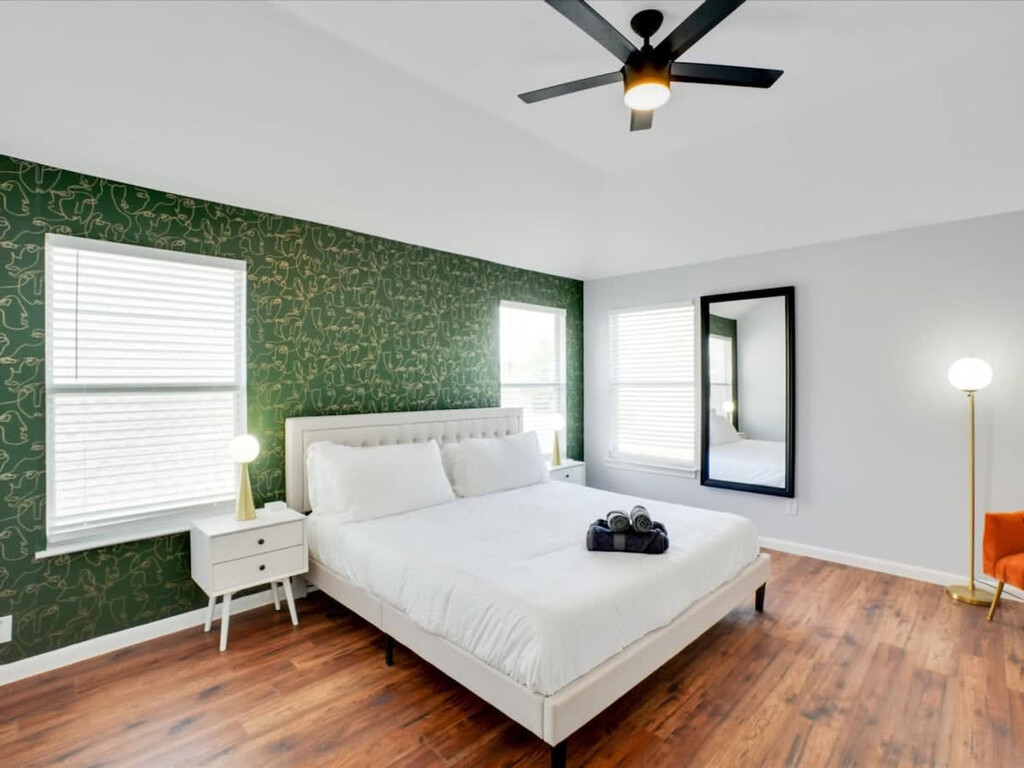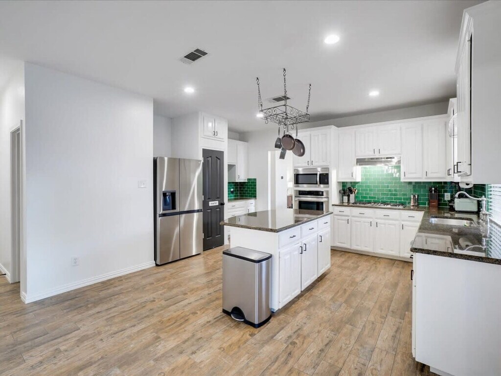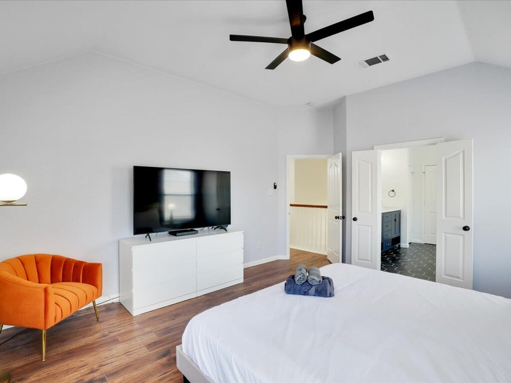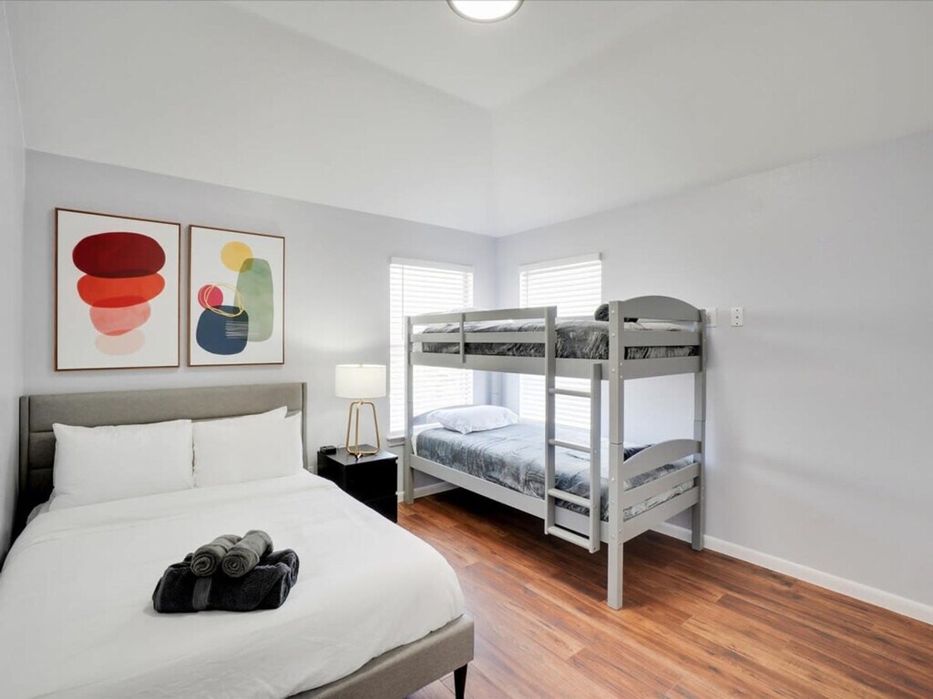 Experience the epitome of luxury in this dreamy urban oasis, featuring six bedrooms and three bathrooms. This stunning home offers a sophisticated living area, a cinema room, and a fully equipped chef's kitchen. Enjoy the seamless indoor/outdoor living experience with a gorgeous backyard, complete with a swimming pool, hot tub, and an expanded patio with a pergola. This home caters to both short-term and medium-term stays, making it an excellent choice for corporate housing needs. The spacious kitchen features granite countertops, a large island, and updated stainless steel appliances, perfect for unleashing your culinary prowess. The dedicated dining area offers a sophisticated restaurant feel, while the living room provides a charming space with comfortable seating, a flat-screen TV, and high-speed Wi-Fi. The bedrooms are designed for ultimate comfort, with a master bedroom featuring a king-size bed and additional bedrooms with queen-size beds, bunk beds, and a sofa bed. The spa-like master ensuite bathroom includes dual vanities, a soaking tub, and a glass walk-in shower. Free parking is available with a double garage and driveway space. A pet-friendly stay is offered with a non-refundable pet fee of $150 per pet, with a maximum of two pets per stay. An additional nightly rate applies for more than six guests, with a $29/night fee for each extra guest. Centrally located in the Dallas-Fort Worth metroplex, Haltom City offers a vibrant community with unique activities and nearby towns to explore. Known for its quaint museums and small-town western feel, the area boasts three mega malls for shopping enthusiasts. Nearby attractions include the DFW Elite Toy Museum, parks, and golf courses, as well as Sundance Square and Six Flags Over Texas, all within a short drive. Smoking is not allowed, with violations subject to a $450 fine plus cleaning costs. Check-in is at 4pm and checkout is at 10am. No parties or large gatherings are allowed, and only registered guests are permitted on the property. Noise level monitoring devices are installed to ensure compliance with local noise ordinances. The fireplace is gas-operated and should not be left unattended. No street parking is allowed, with a maximum of two cars in the garage and two in the driveway. The home includes high-speed Wi-Fi and a dedicated cinema room that can double as a workspace, providing a comfortable environment for remote work. Registration Number: STR-25-001185 [SI]