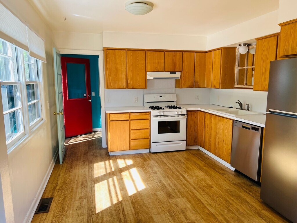 This house features two bedrooms on the main floor with full bathroom, and one bedroom or office space on second floor. Spacious fully fenced backyard great for pets and gardening opportunities. Open kitchen with room for dining table. Hardwood floors throughout, with lots of windows, allowing for plenty of natural light. Professional landscaping included. Tenants cover gas, electric, and water sewer. Detached garage for storage. Two offstreet parking spots. Conveniently located Near SE. Cesar Chavez Boulevard and just one block off of Southeast Woodstock. Walk to coffee, restaurants, grocery and pubs. Public transport just steps away. Open application period begins March 9 at 8 AM. Visit company website vacancies page to view screening criteria and apply online. This is not a type an accessible unit. $60 application fee per adult applicant. One year lease required. Renters insurance required. Pets allowed with $25 monthly pet fee two pets maximum.