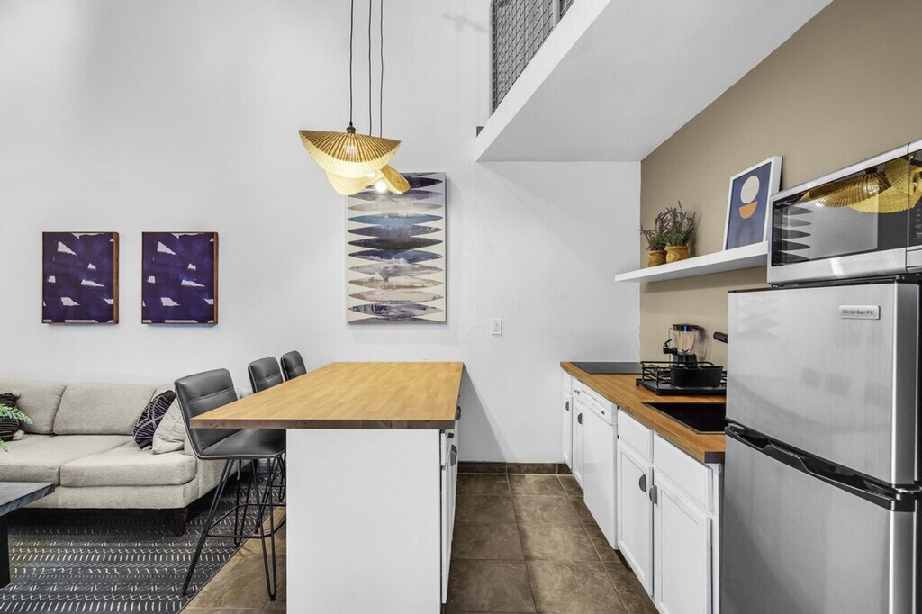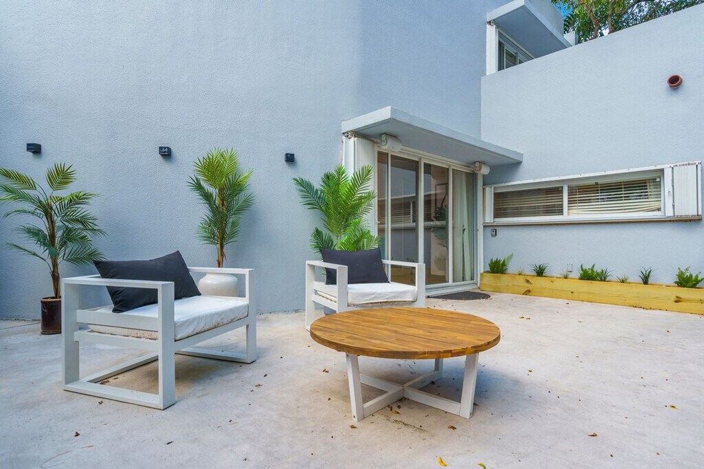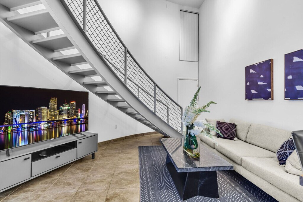 The advertised rate of $5,272/month is the lowest available price, based on a 1 month(s) stay with a move-in date of September 9, 2026. Rates vary depending on the duration of stay, season, and other parameters. For exact pricing and additional pricing components, please visit our website and enter your desired move-in and move-out dates. The rate is applicable when billed upfront; it can be higher if billed in multiple payments. Escape to this architecturally striking, rear-unit, split-level 3-bedroom, 2-bath home tucked just north of the University of Miami campus. Blending gallery-style design with warm, natural textures, this retreat is perfect for families, friends, or visiting scholars seeking both style and convenience. Feel at home in this unique space. The main living level features an open-concept loft with a dramatic spiral staircase, soaring ceilings, and contemporary track lighting. Relax in the comfortable seating area with a plush sectional, marble-topped coffee table, and 55" Smart TV. The kitchen is complete with a butcher-block island, stainless fridge, induction cooktop, dishwasher, microwave, and stocked coffee bar. There's also a breakfast bar and dining nook for casual bites or game-night gatherings. Enjoy the private patio with plush lounge chairs and a coffee table, the large, bubbling hot tub hidden among lush foliage, and the expansive, gated rooftop terrace with panoramic treetop views. Amenities include high-speed Wi-Fi, Smart TVs in the living area and primary suite, central A/C, ceiling fans throughout, and an in-unit washer and dryer tucked behind stylish louvered doors. Linens, towels, toiletries, hangers, an iron/ironing board, and a hair dryer are provided. Furniture for the rooftop deck is provided upon request. Located just north of the University of Miami campus, this home offers both style and convenience. Parties, social gatherings, or events are strictly prohibited and violations may result in immediate cancellation of the reservation without refund and additional charges for damages. Smoking is not allowed inside the property and non-compliance will incur a $500 cleaning fee. The property accommodates up to 6 guests and exceeding this number is not allowed and may lead to immediate reservation termination without refund. Please respect quiet hours from 10:00 PM to 8:00 AM. Negligence causing clogs (e.g., flushing prohibited items or excessive toilet paper) may result in a $350 plumbing fee. Unauthorized overstays may result in penalties up to 200% of the nightly rate and full compensation for lost bookings if applicable. One of the guest bedrooms (ground floor) offers a flexible layout for remote work with a desk set-up. The hot tub is shared with another tenant. Registration Number: U [SI]